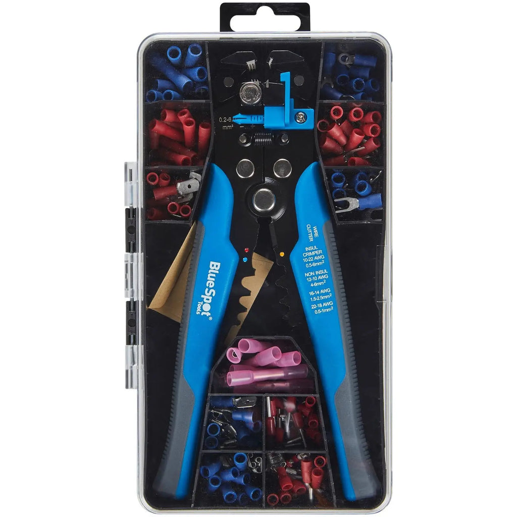 BlueSpot Automatic Wire Stripper Crimping Pliers and Terminal Accessory Set 231 Piece