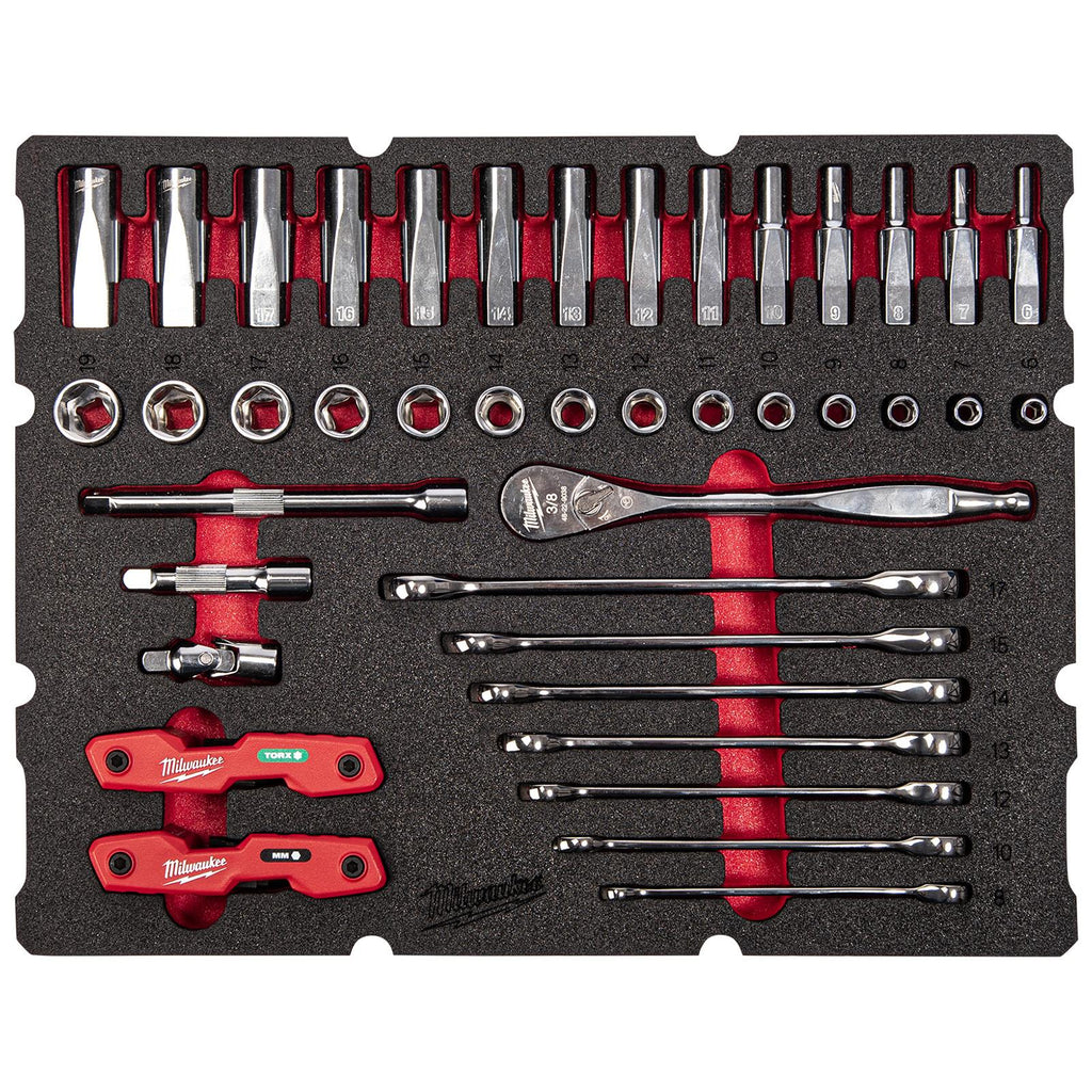 Milwaukee Packout Drawer 3/8" Drive Ratchet and Ratcheting Combi Spanner Foam Insert Set 55pc