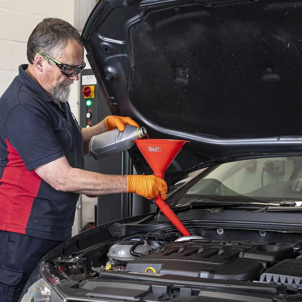 Sealey Angled Spout Oval Funnel with Filter 200mm - Medium