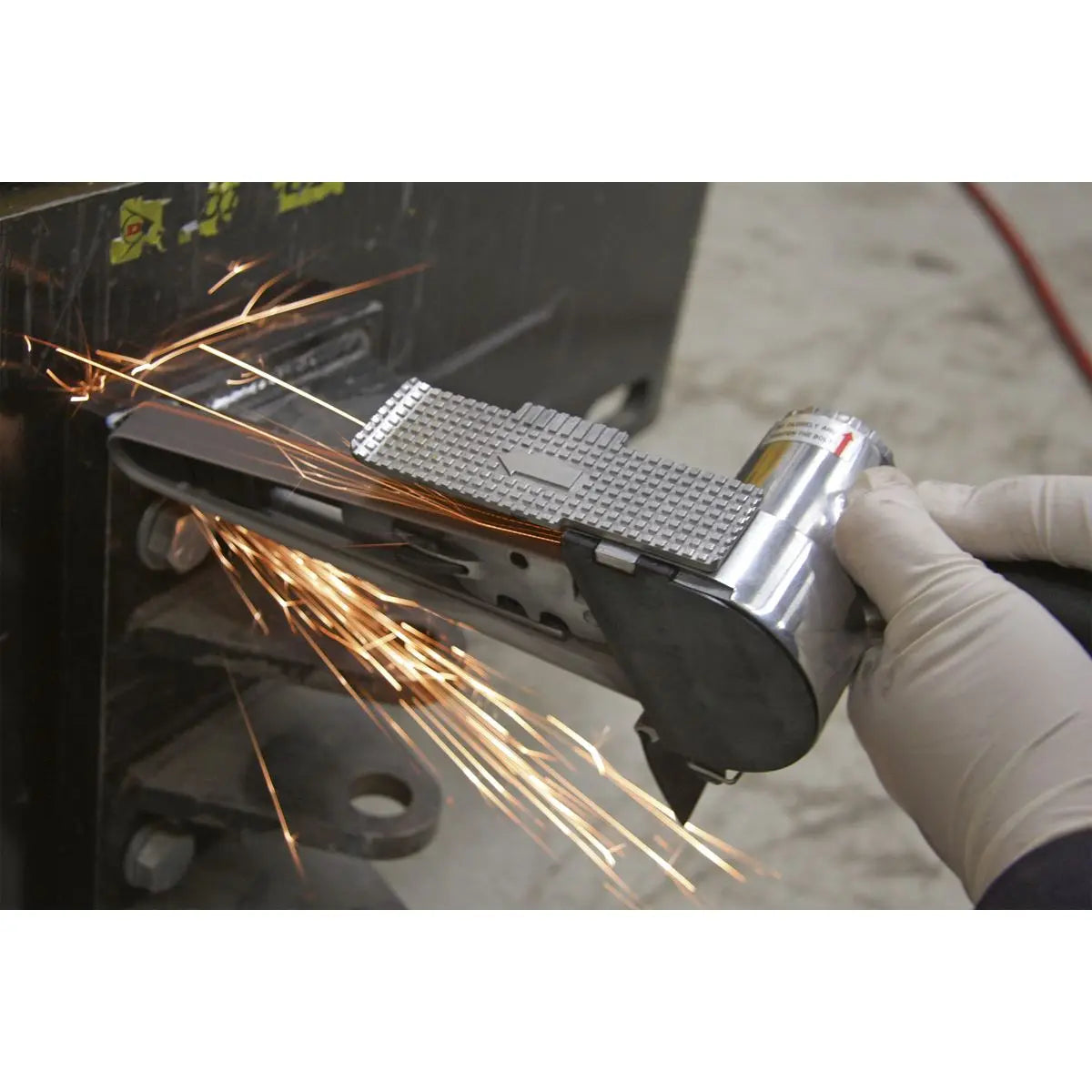 Features belt tracking control, heavy-duty nose roller and one-handed trigger operation.