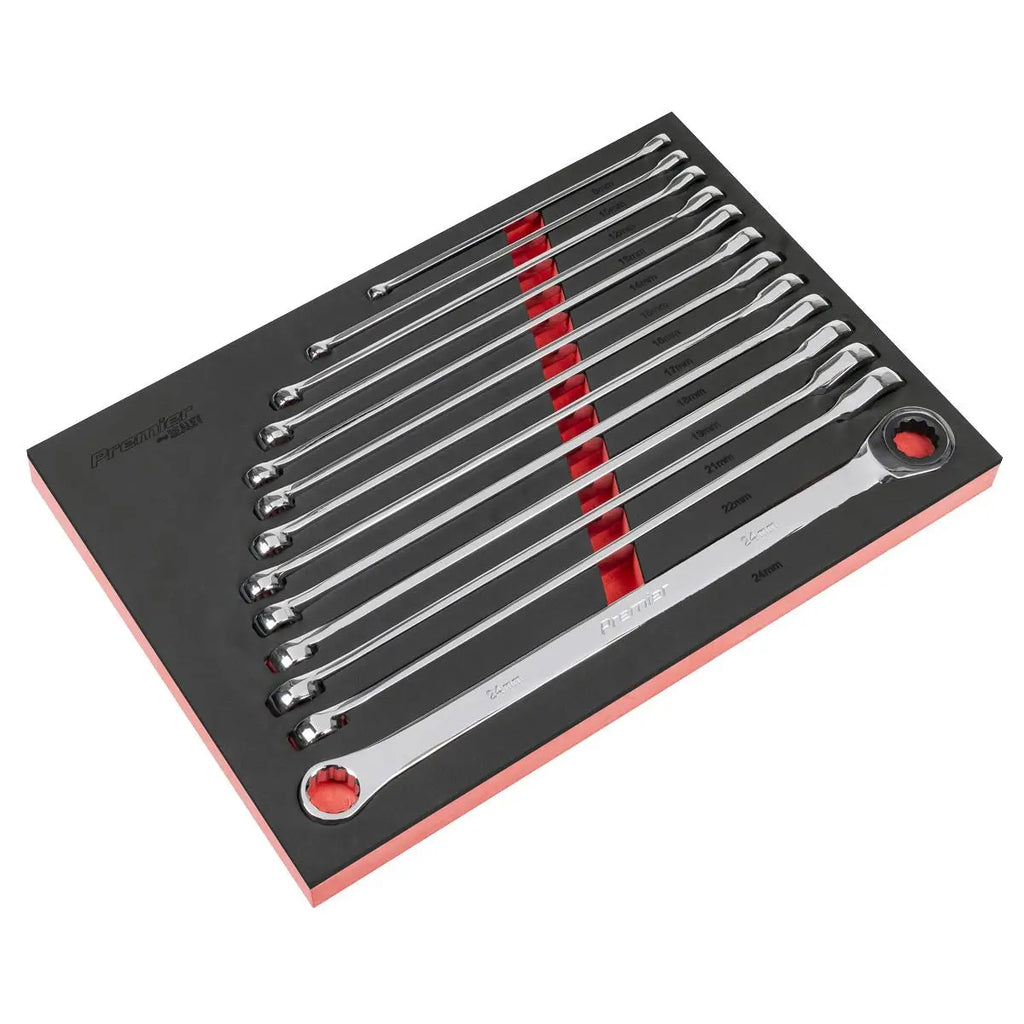 Sealey Premier Extra-Long Double Ring Ratchet/Fixed Spanner Set 13pc