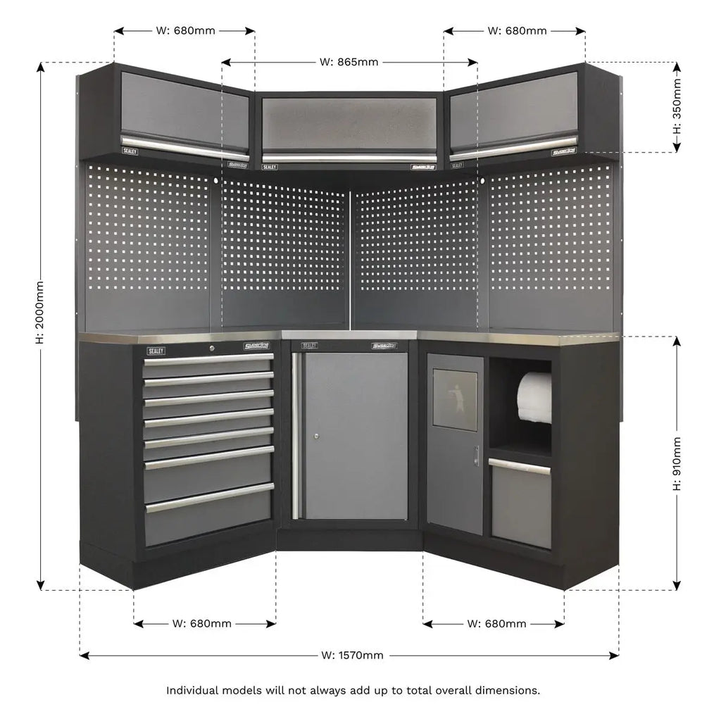 Sealey Superline Pro Superline PRO® 1.6m Corner Storage System - Stainless Worktop