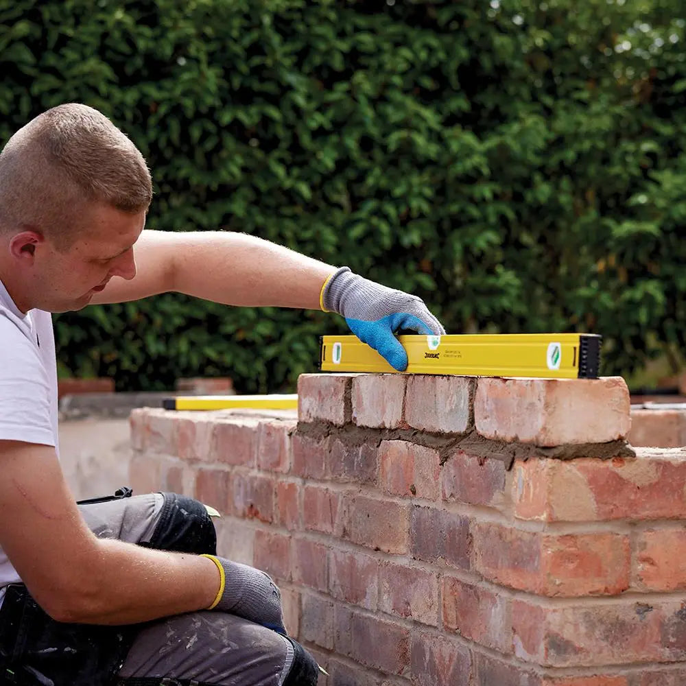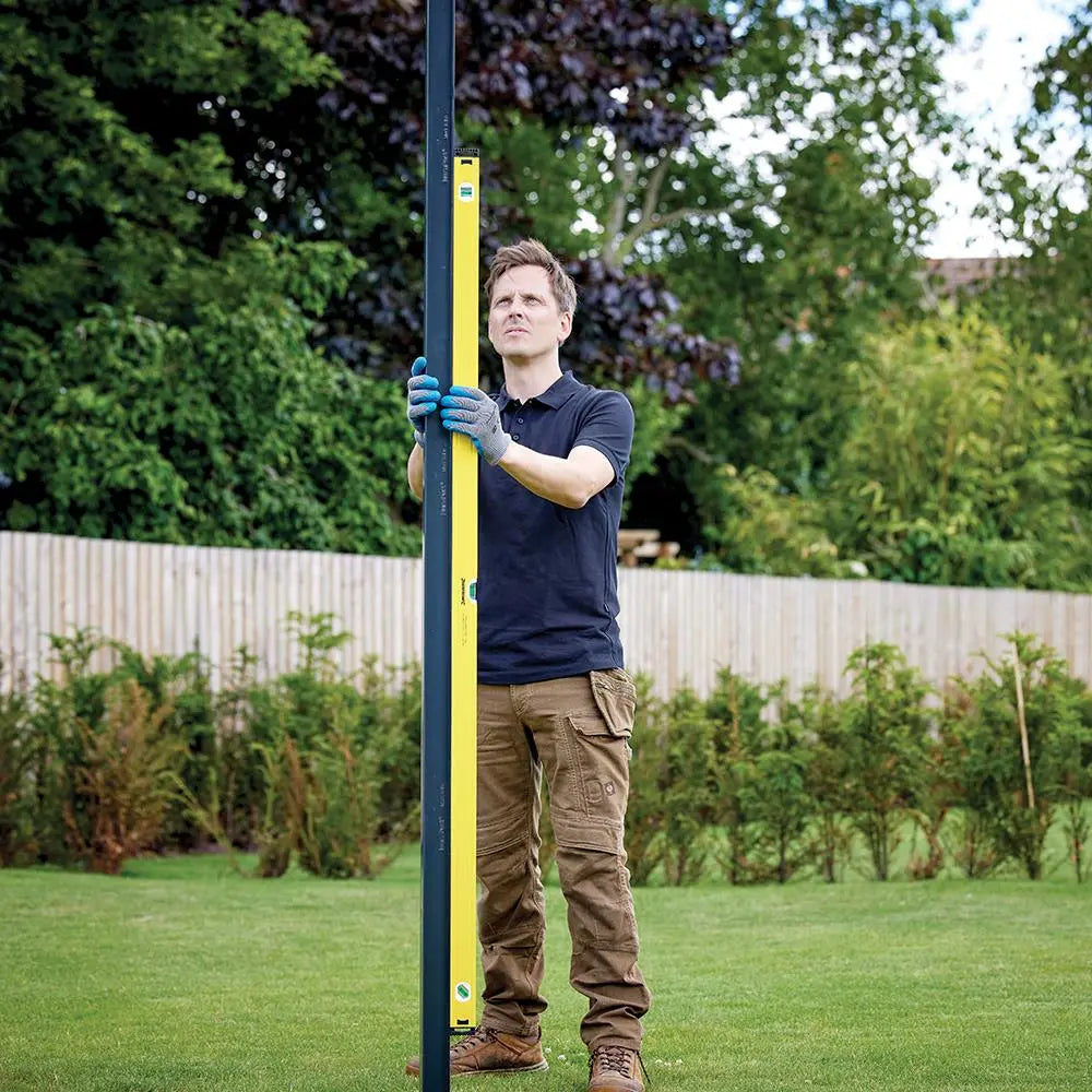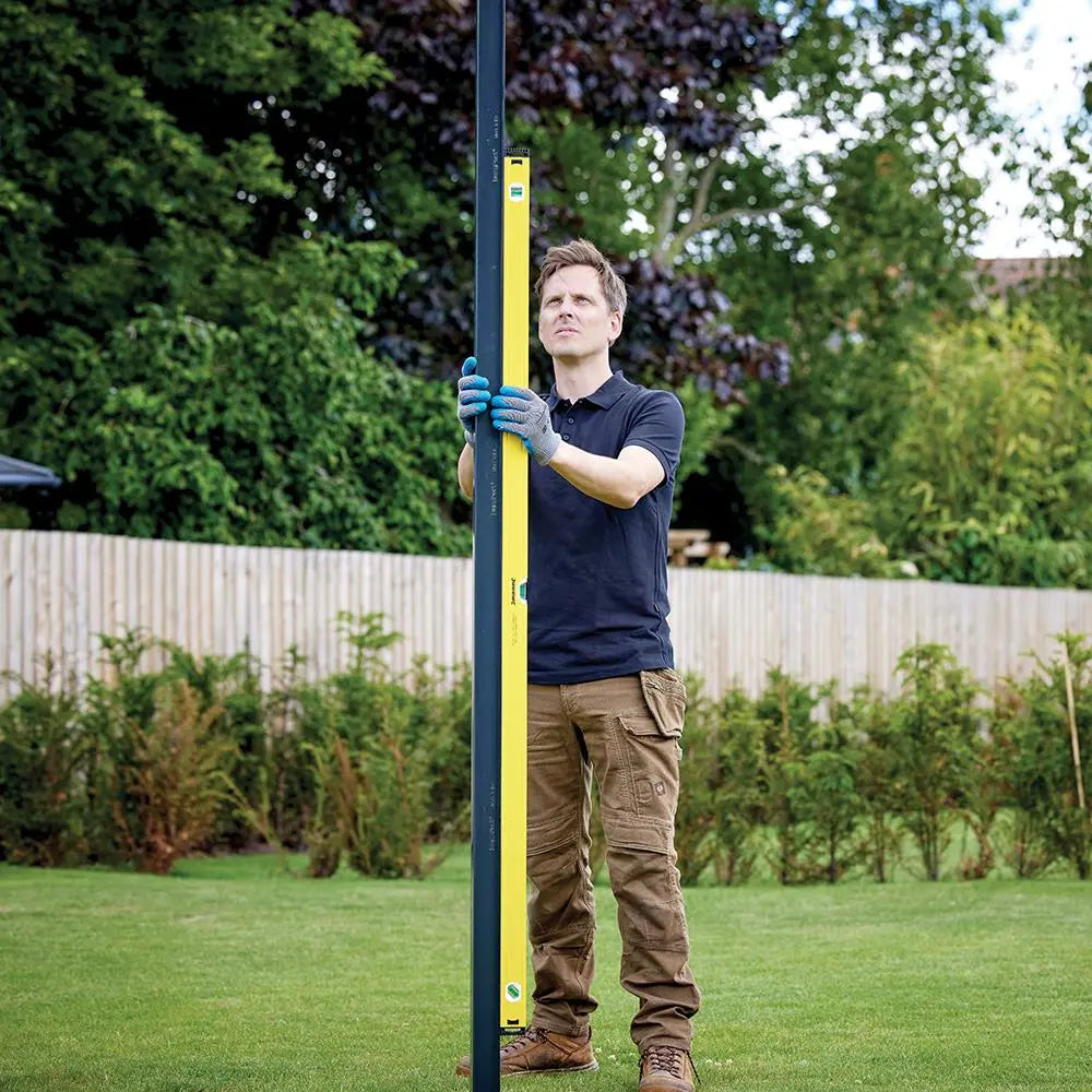 Extruded aluminium construction (1.1mm thick). Milled V-groove bottom face for accuracy and pipework applications. Ribbed sides, protective end caps and hanging hole. Highly visible, UV-resistant 45°, 90° and 180° vials. Accurate to 1mm/m.