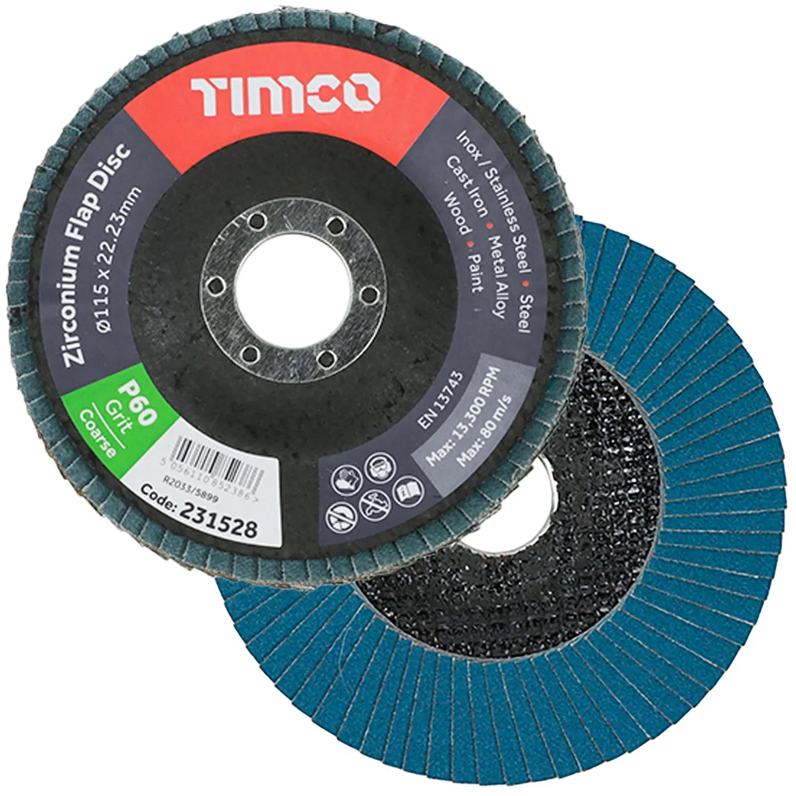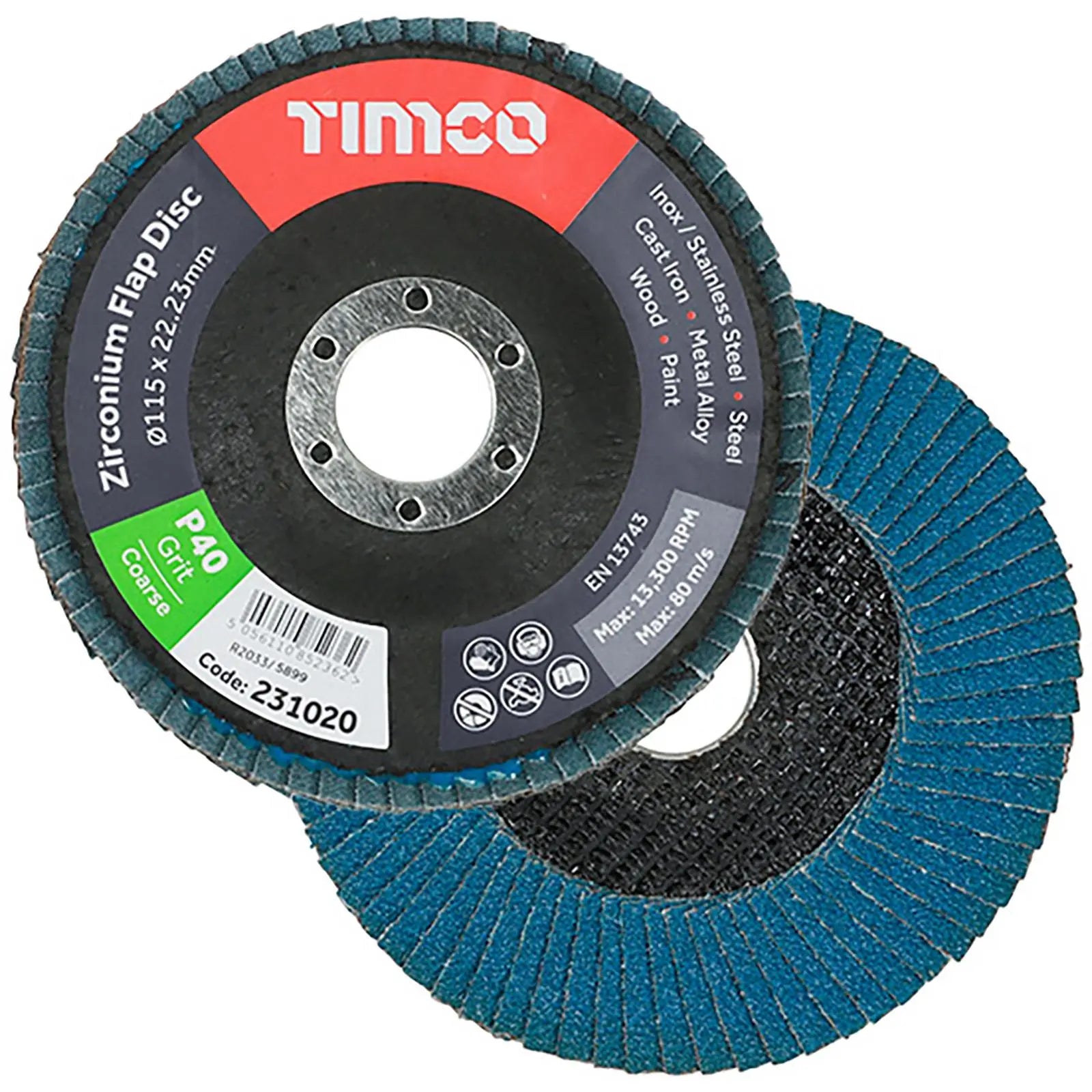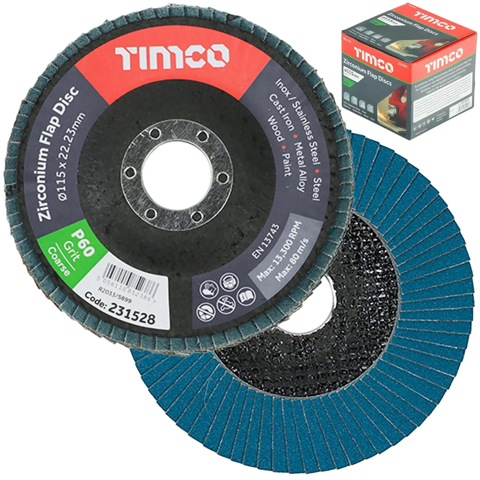 TIMCO Flap Discs Zirconium 115mm for Metal and Wood Premium Heavy Duty 10 Pack - Choose Grit