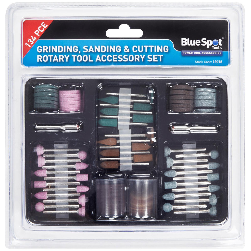 The BlueSpot Tools 134 PCE polishing & grinding accessory tool set is ideal for cutting, grinding, sanding and finishing precision craft and hobby work. Ideal for use with most rotary tools.