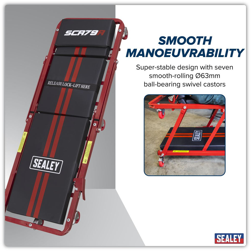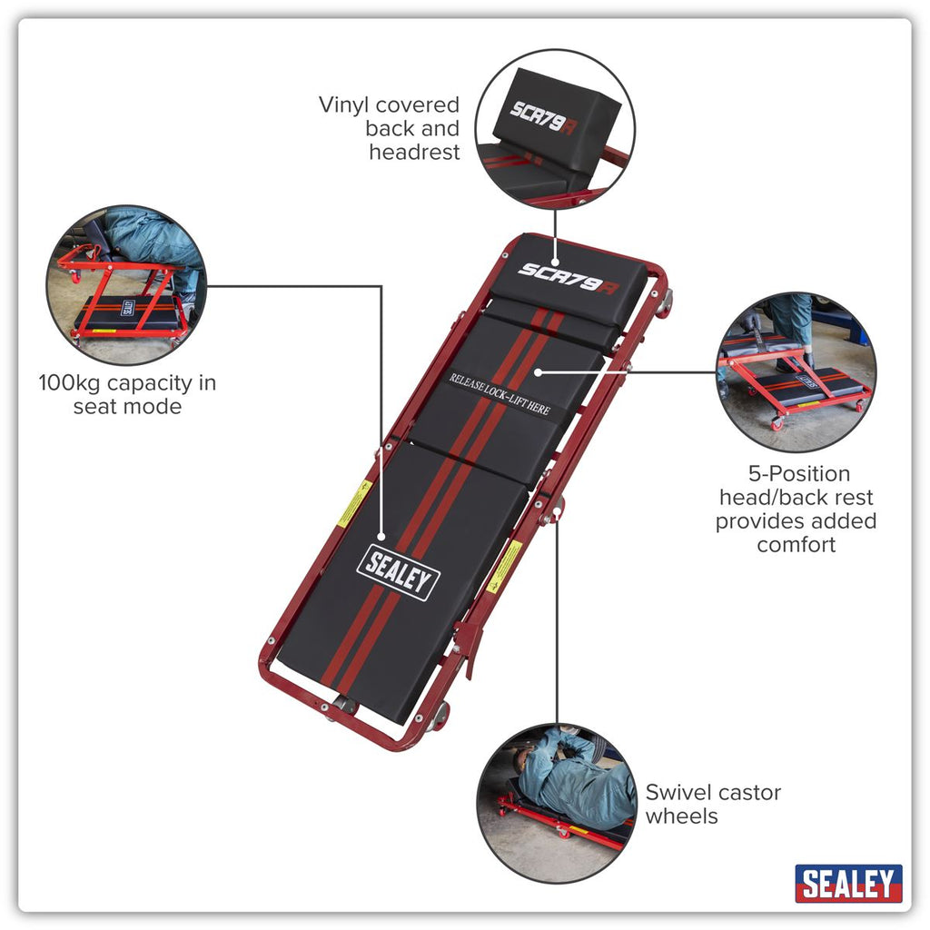 Sealey Steel Creeper/Seat with 7 Wheels & Adjustable Head Rest