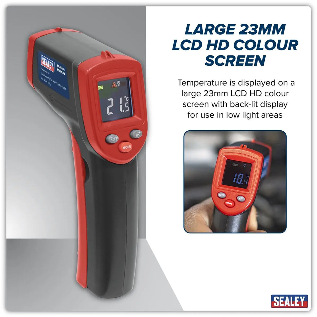 Temperature is displayed on a large 23mm LCD HD colour screen with back-lit display for use in low light areas.