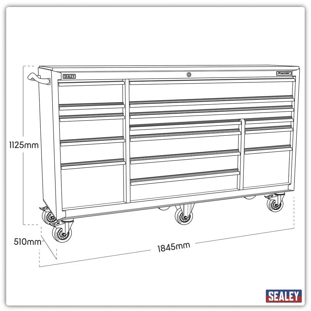 Sealey Premier Rollcab 15 Drawer 1845mm Extra-Wide Heavy-Duty Black