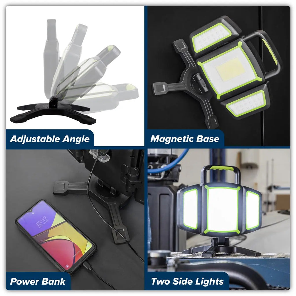 ROTATING BASE - Light can be rotated 360°, whilst the side lights can rotate 180° independently to light an even larger area.