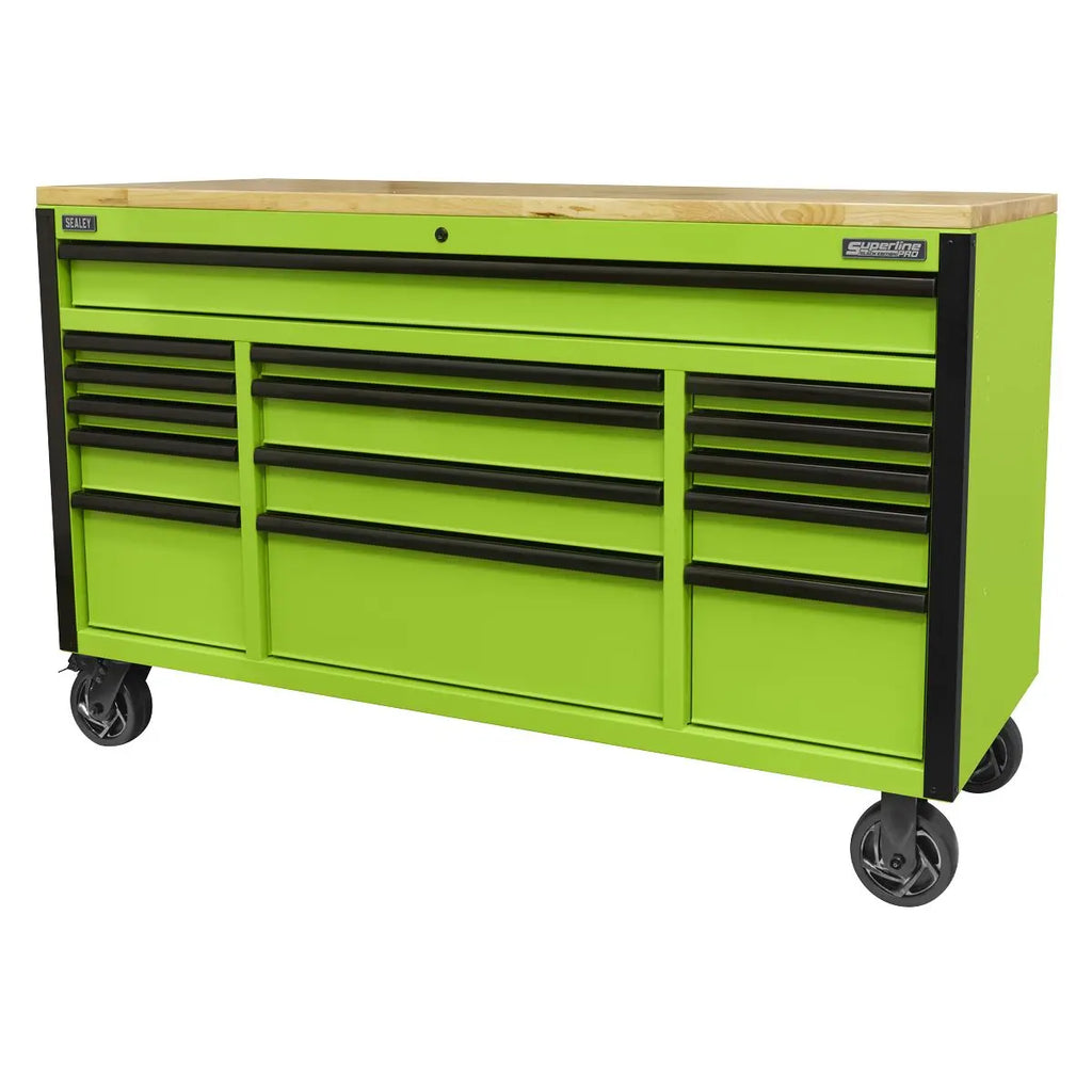 Sealey Superline Pro PRO® Black Edition Mobile Trolley with Wooden Worktop 15 Drawer 1549mm