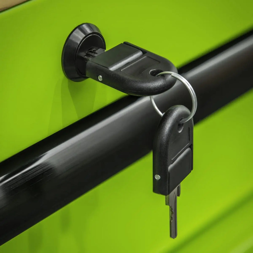 Full height rear locking mechanism, locks smooth running soft close drawers in place.