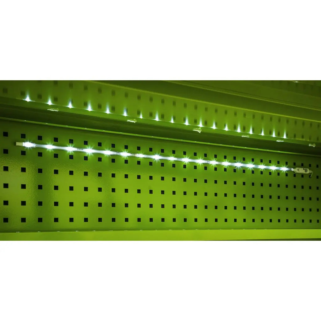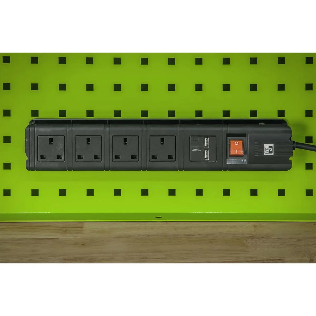 Hutch is supplied with a power bar (4 x 230V, 2 x 5V 2.4A USB sockets) which can be easily installed where needed as well as Sealey LED light strips.