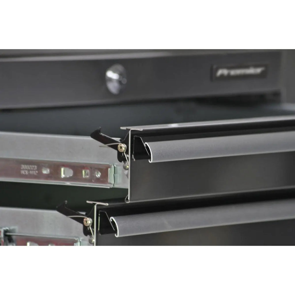 All drawers have full width sand blasted aluminium 'Lift & Latch' drawer pulls, making easy access while preventing inadvertent opening when box is being moved