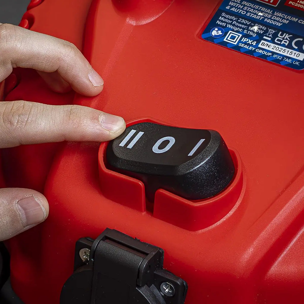 Sealey 20L Industrial Vacuum Cleaner Wet & Dry with Stainless Drum Auto Start 1400W/230V
