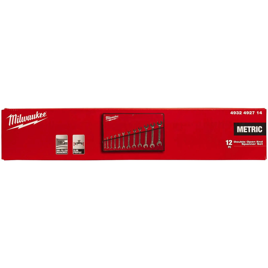 Milwaukee double open end spanner set with slim head dimensions for access in tight areas.