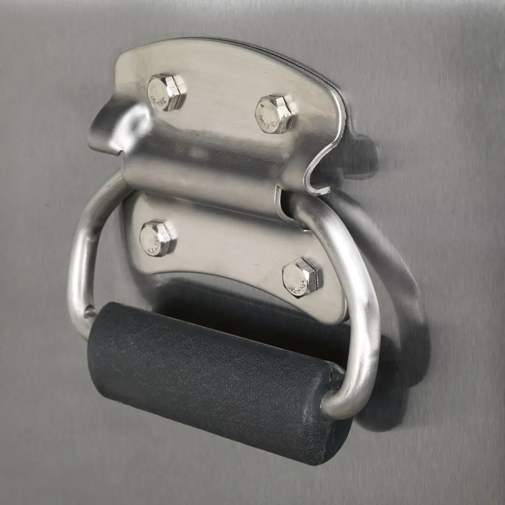 All drawers have full width sand blasted aluminium 'Lift & Latch' drawer pulls, making easy-access while preventing inadvertent opening when box is being moved.