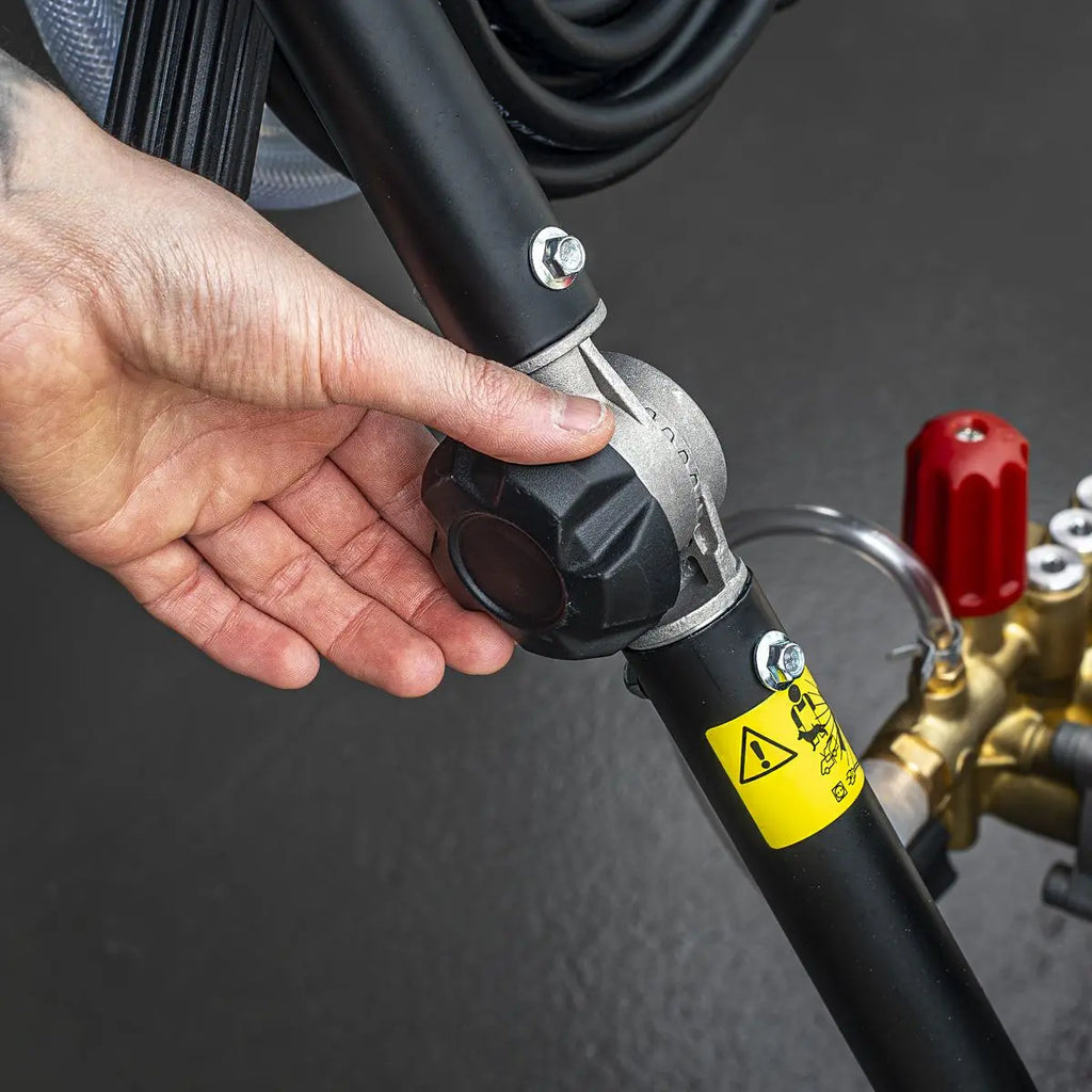 PROFESSIONAL PRESSURE WASHER – Ideal for commercial applications with 7.6m pressure hose, 3m water pipe, and 1m gun and lance with interchangeable nozzles.