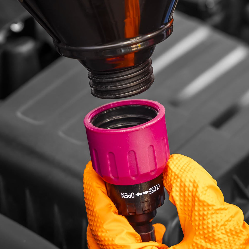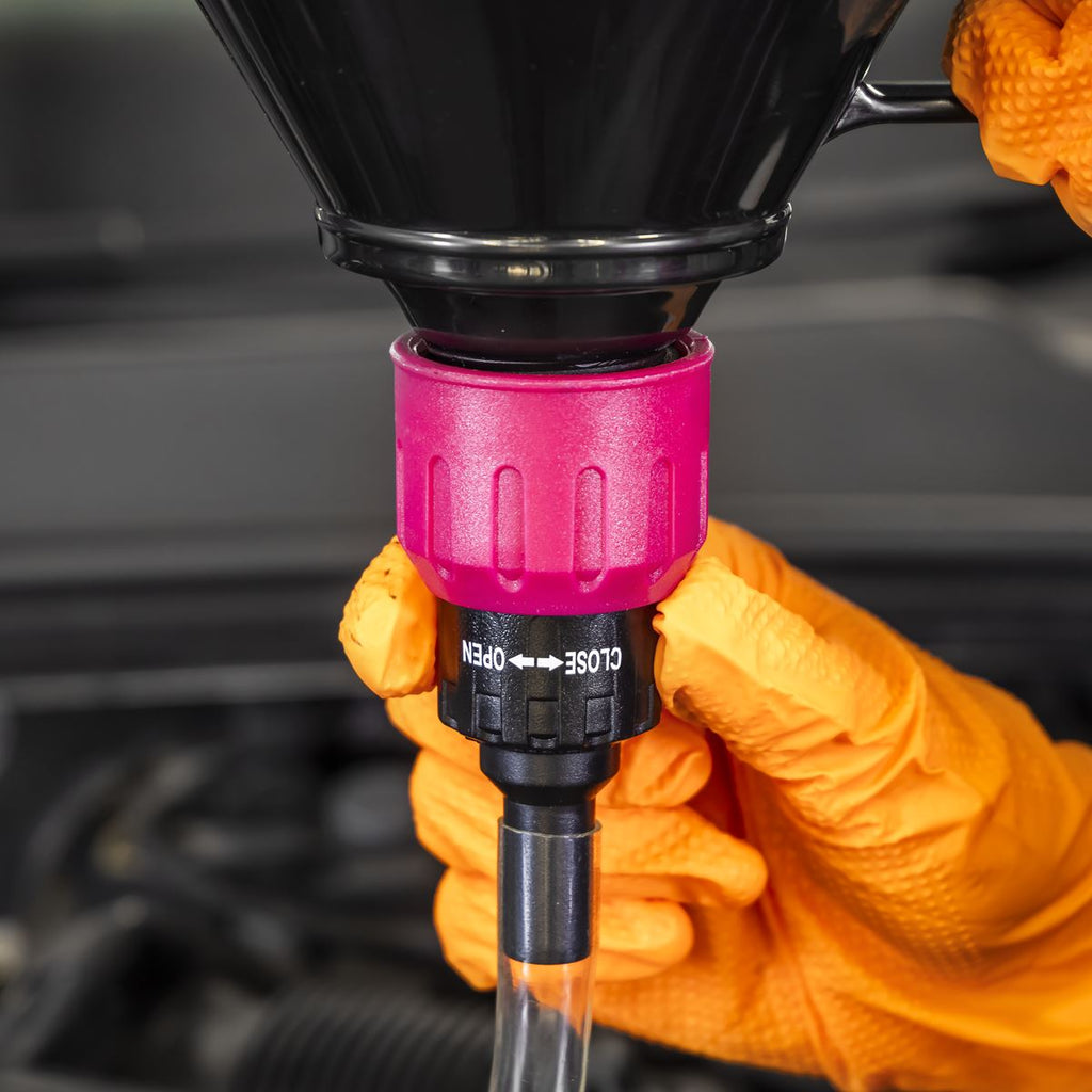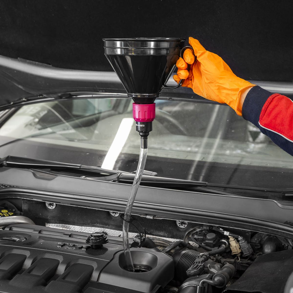 Heavy-duty polyethylene funnel resistant to oil, fuel and some acids.