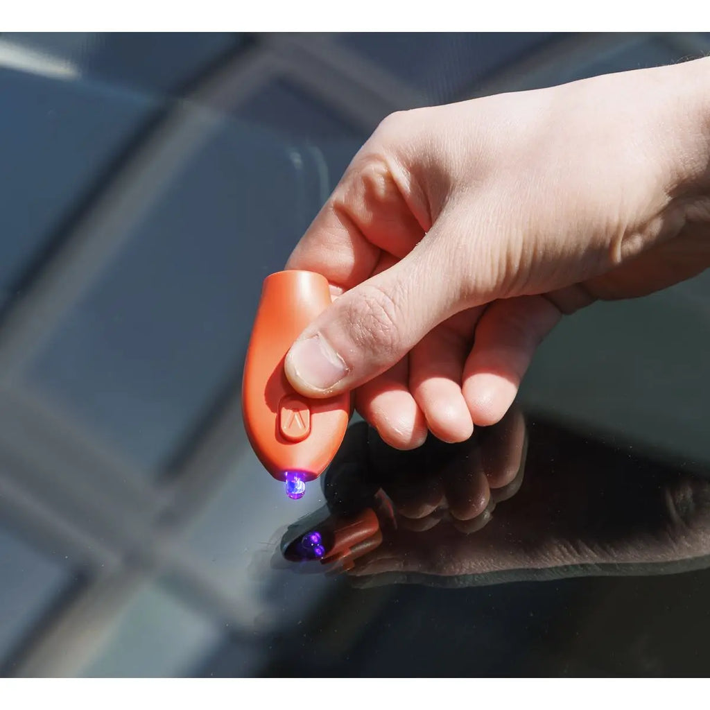CONTENTS: - Push Pin, Cleaning Cloth, Repair Pedestal, Razor Blade, Repair Resin, Injector Syringe, UV Light, Curing Film (x5), Instruction Manual.