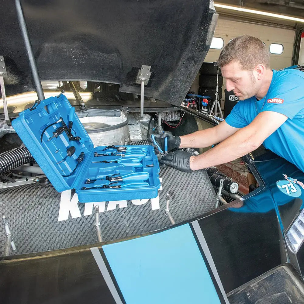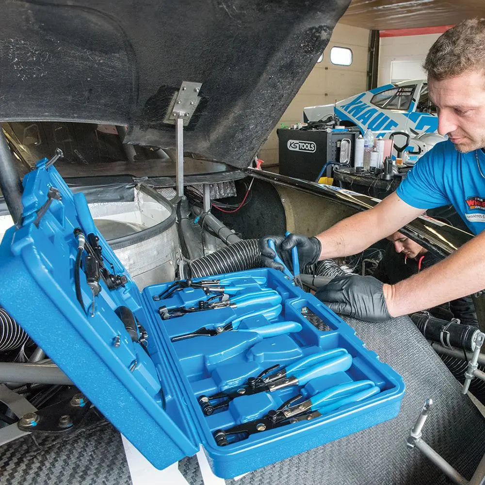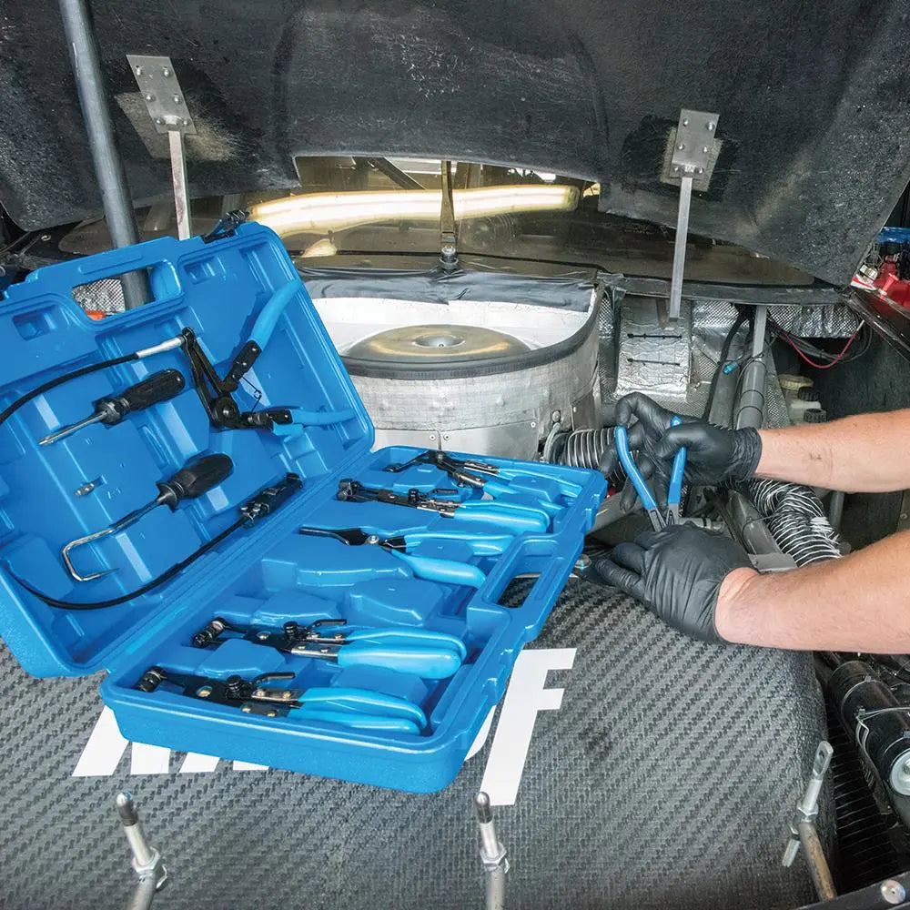 - Includes 7 x types of pliers, hose pick, double-ended screwdriver & tough storage case