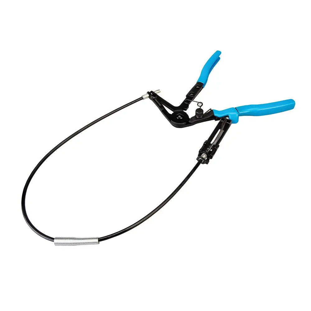Heavy duty carbon steel construction with vinyl-dipped ergonomic handles. Removes hose clips on different vehicle systems. Ratchet locking mechanism on pliers keeps hands free, making jobs easier and faster. Diameters: 18 - 54mm (11/16 to 2-1/2"). Includes remote action hose clip tool, swivel jaw spring wire clip pliers, swivel jaw band clip pliers, angled band clip pliers, flat band clip pliers, clicker type pliers, hose removal pliers, hose pick, double-ended screwdriver and tough storage case.