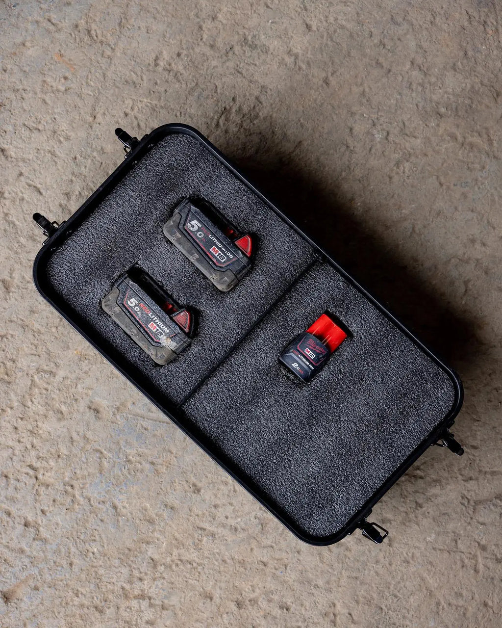 The Rogue 85 has been designed to store and transport up to seven power tools and eight 18V batteries using its designated clip-on tool tray. It comes supplied with easy-cut layered foam, which can be customised with a scalpel to perfectly fit your batteries and single charger. Larger chargers and bulkier gear can be housed in the spacious main compartment, where adjustable dividers let you configure the layout to your exact needs.