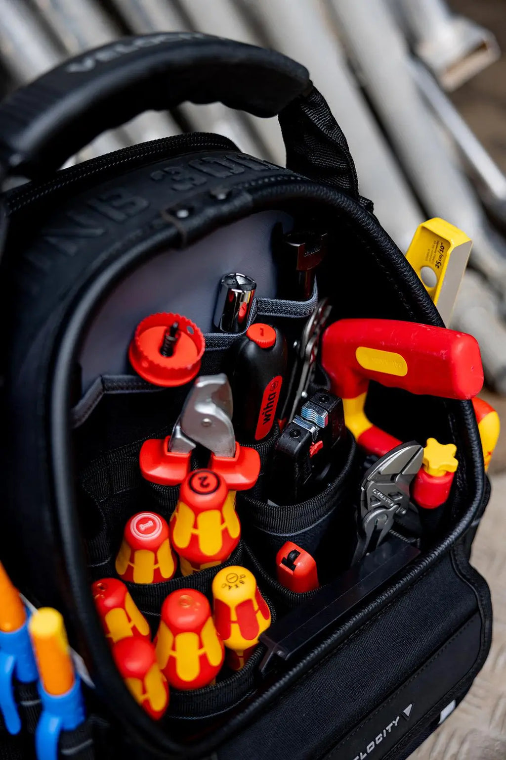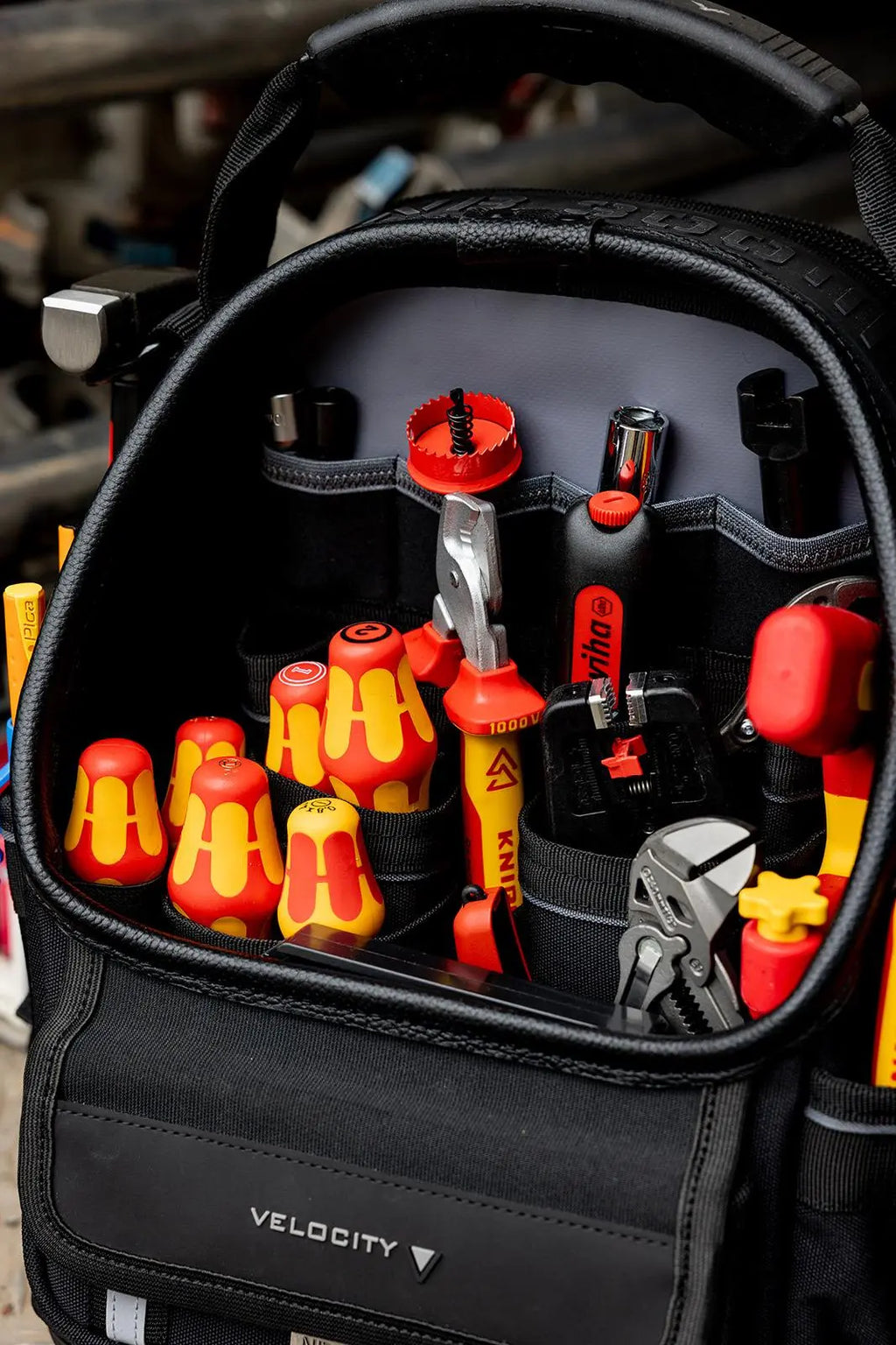 At the rear, a concealed zipped compartment includes soft-lined internal pockets, purpose-built for multimeters, probes, and other sensitive devices. This dual-purpose layout delivers the perfect balance of speed and security.