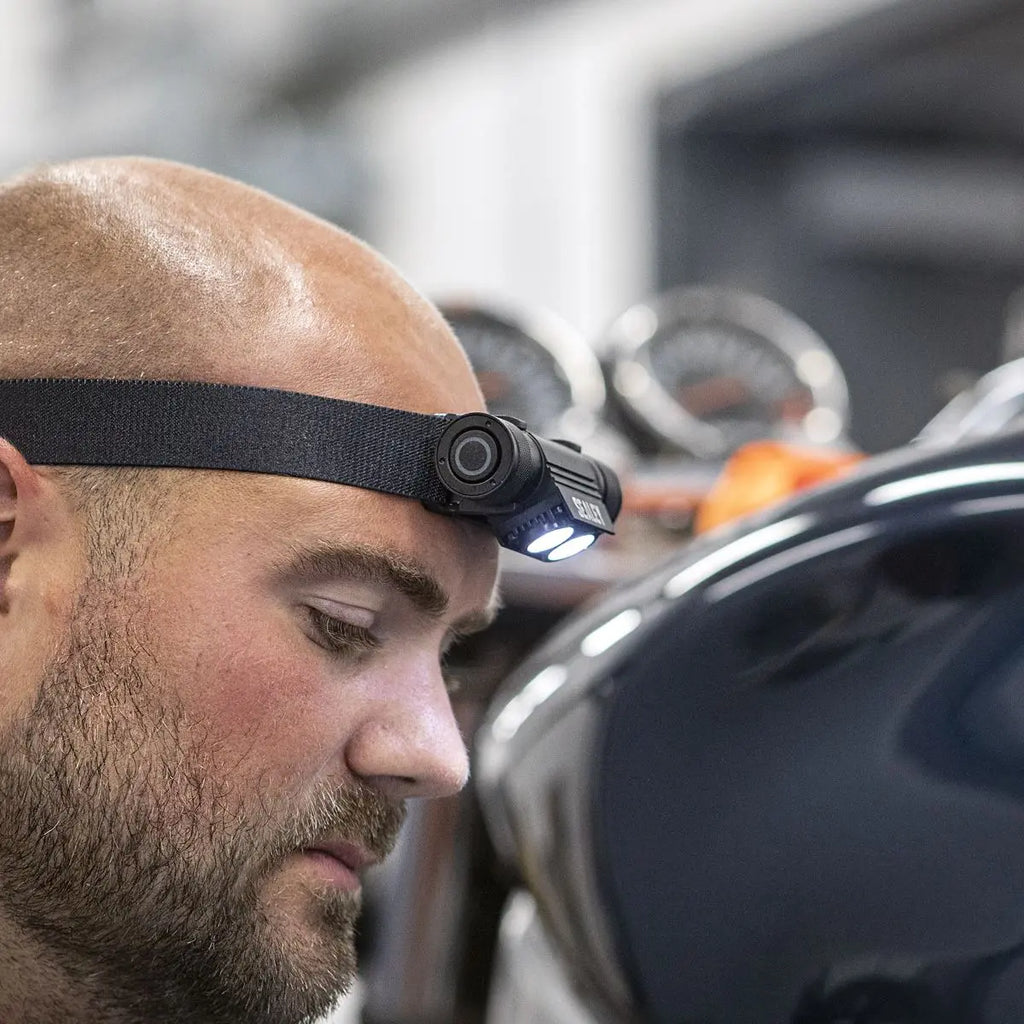 180° TILT - Head torch features 180° of rotation, allowing the light to be directed at the optimal angle for hands-free working.