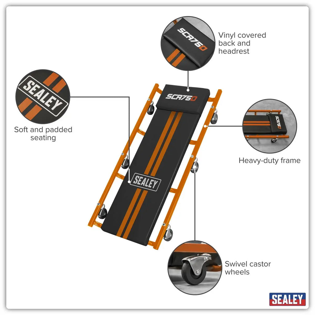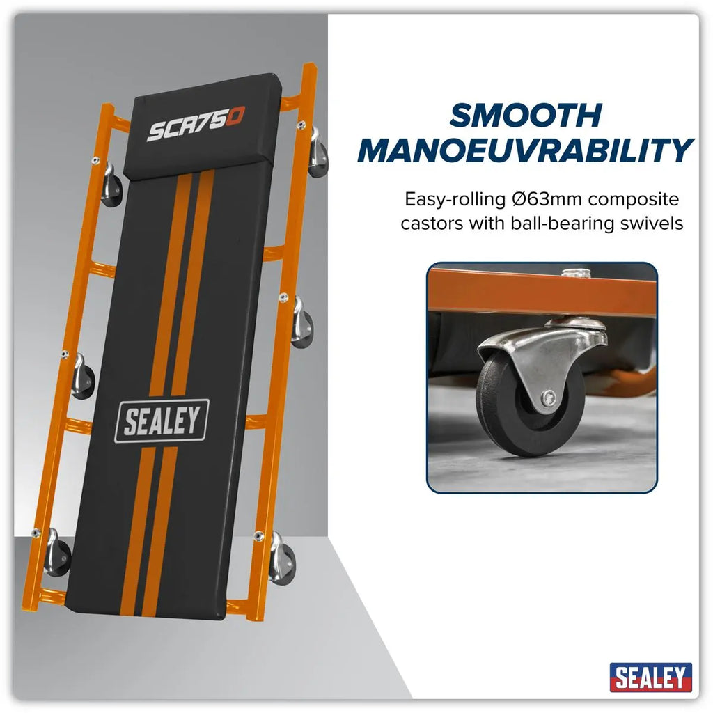 Sealey American-Style Deluxe Creeper 36" with Steel Frame & 6 Wheels - Orange