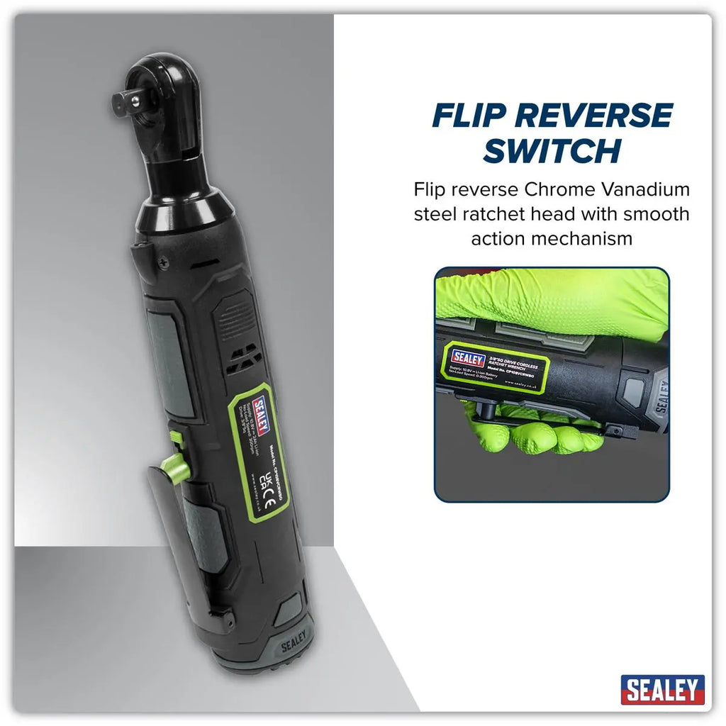 Sealey SV10.8 Series 3/8"Sq Drive Cordless Ratchet Wrench Kit 45Nm 10.8V 2Ah