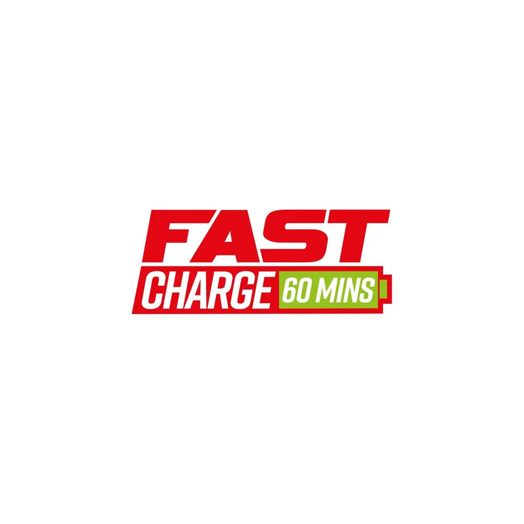 Supplied with fast mains charger and 1 x 2Ah rechargeable lithium-ion battery.