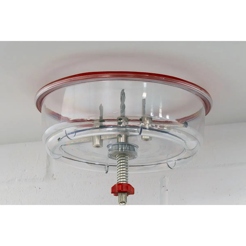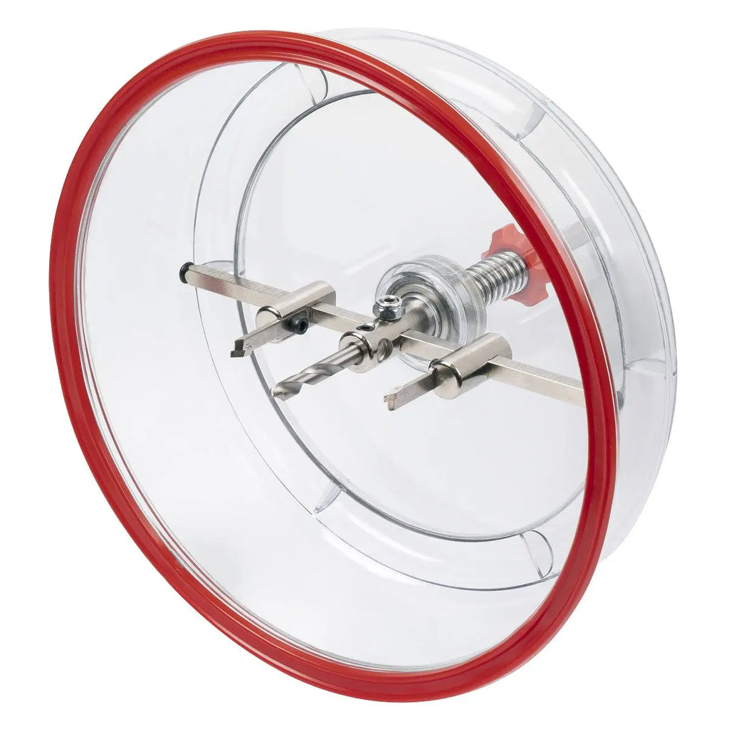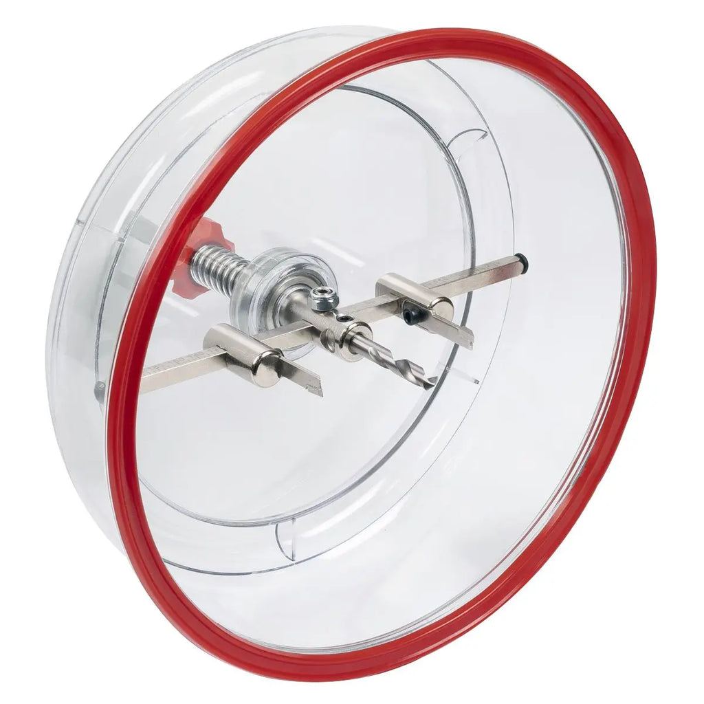 DURABLE - Hole cutter surrounded by strong plastic cowling.
