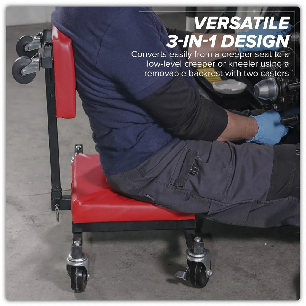 Easily Converts from Creeper Seat to a Traditional Low Level Creeper and to a Kneeler, Thanks to a Removable Back Rest Fitted with 2 Castors