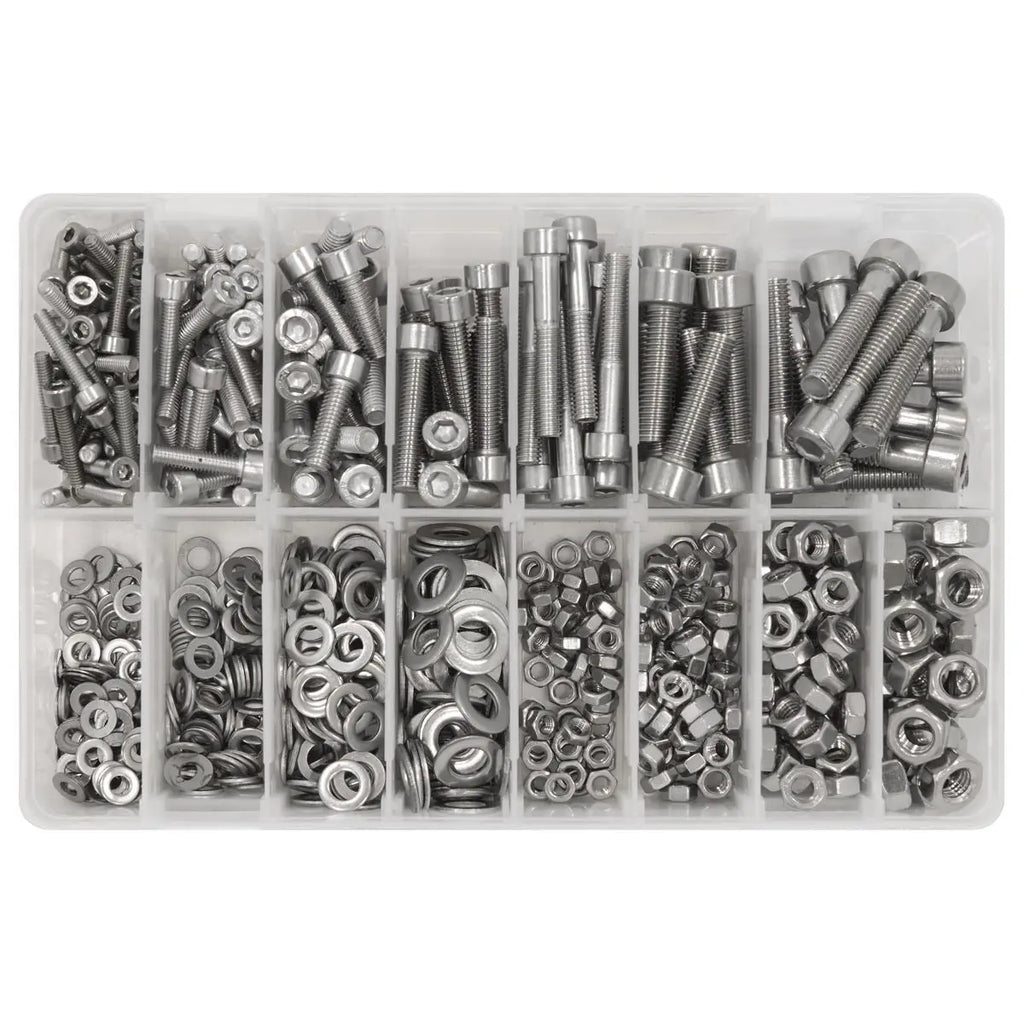 COMPLETE SET - Contains assorted sizes of hex socket bolts and corresponding nuts and washers.