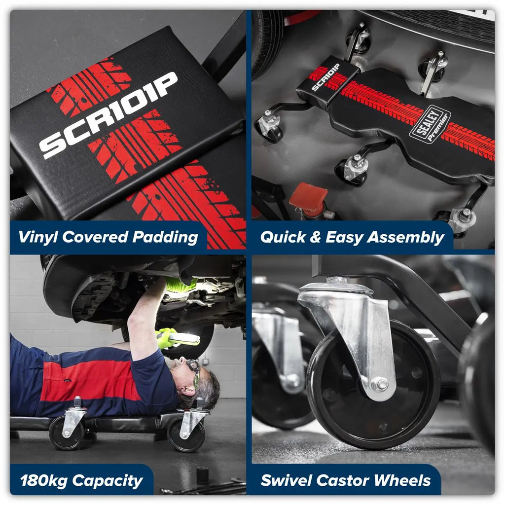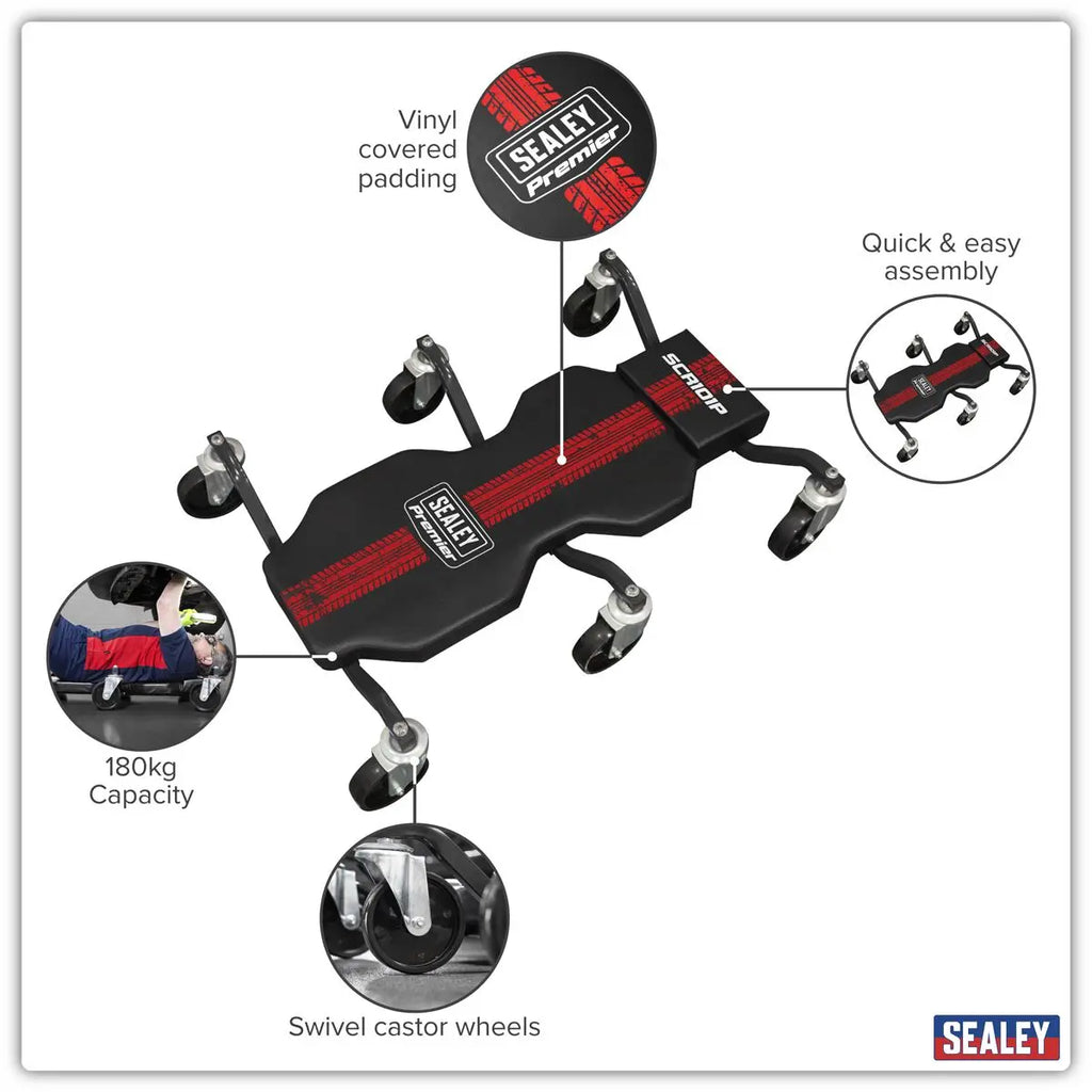 Sealey Steel Creeper with 6 Rough Ground 5" Wheels & Headrest