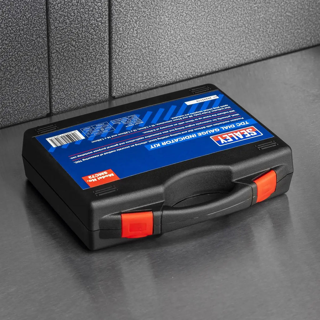 CONTENTS - Dial Indicator, Probe Body, 38, 51mm Extensions, 10 x 1.0, 12 x 1.25, 14 x 1.25mm Spark Plug Socket Adaptors.