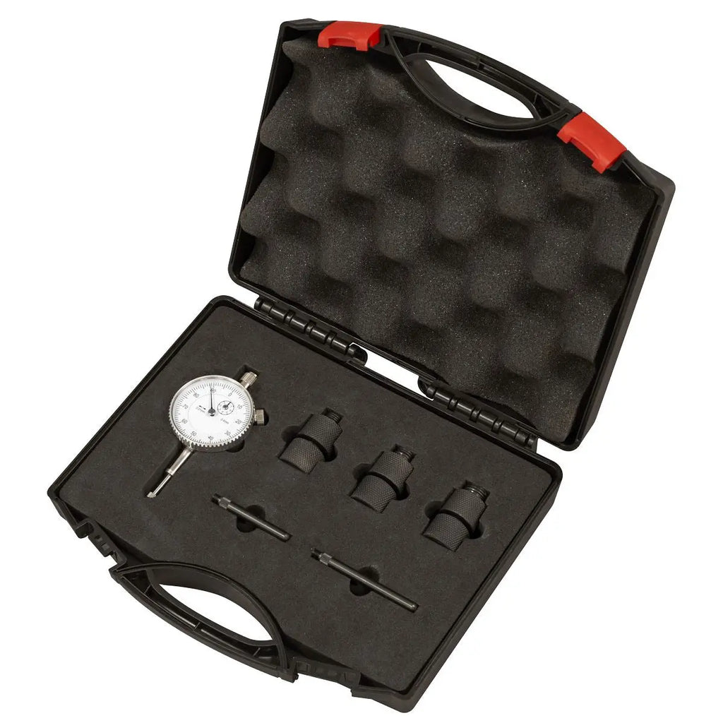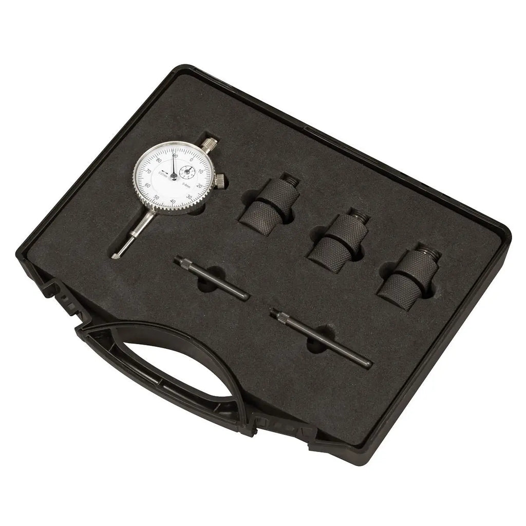 • Contents: Dial Indicator, Probe Body, 38, 51mm Extensions, 10 x 1.0, 12 x 1.25, 14 x 1.25mm Spark Plug Socket Adaptors