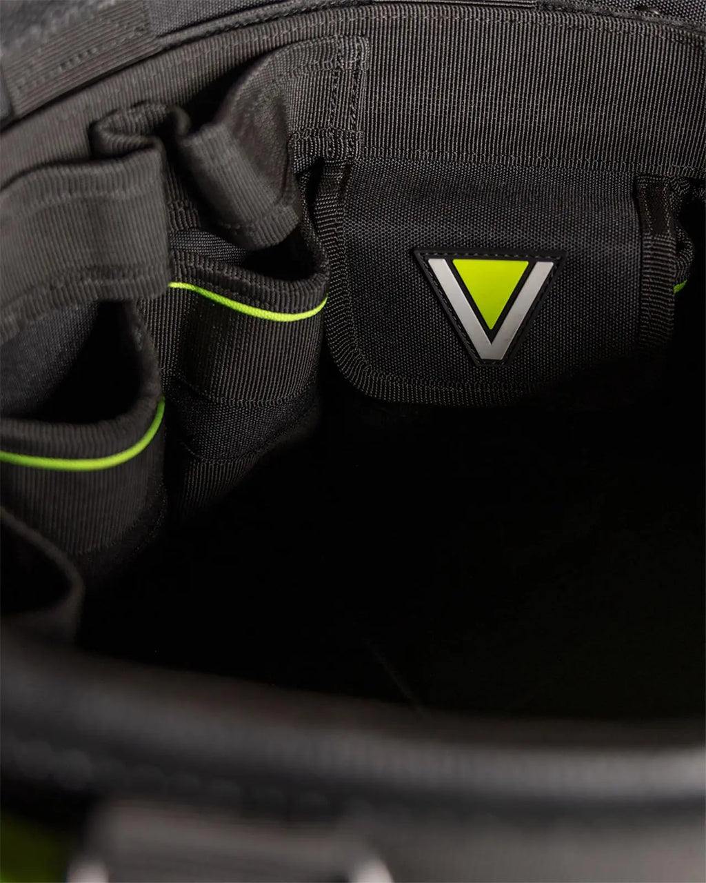 Designed with a spacious central compartment, it features a removable four-way base divider for customisable organisation. The top perimeter includes detachable vertical tool pockets, allowing you to expand the internal capacity for even more storage.