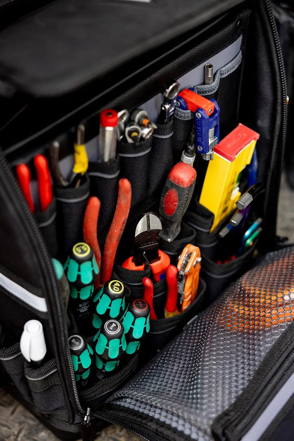 This service-ready bag features two panels with various pouches for hand tools and test equipment, along with a removable thermoplastic pot for service essentials. For tradespeople on the move, the Rogue 90 also converts into a backpack with thermoformed comfort panels for easy transport.