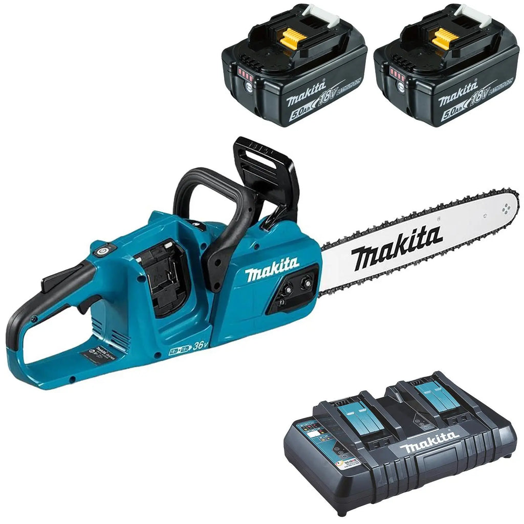 2 x 5Ah LXT Li-ion batteries (BL1850B) comes included in the kit along with rapid dual battery charger (DC18RD)