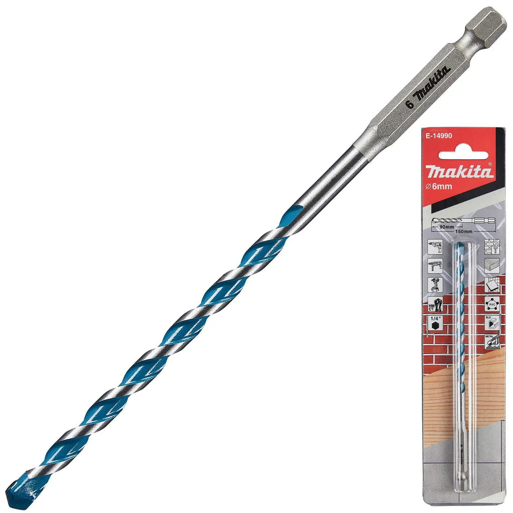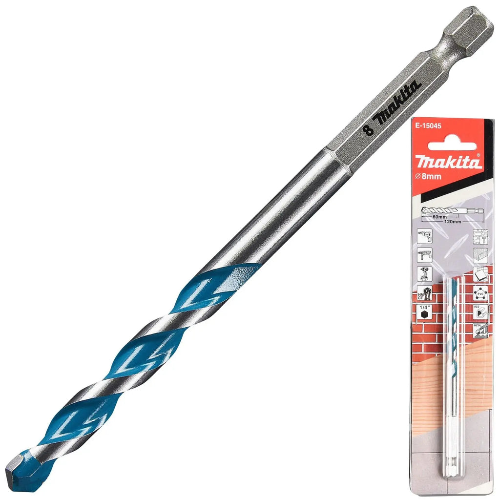 Makita Multi Material Drill Bits TCT 1/4" Hex Shank for Wood Plastic Masonry Tiles Steel - Choose Size