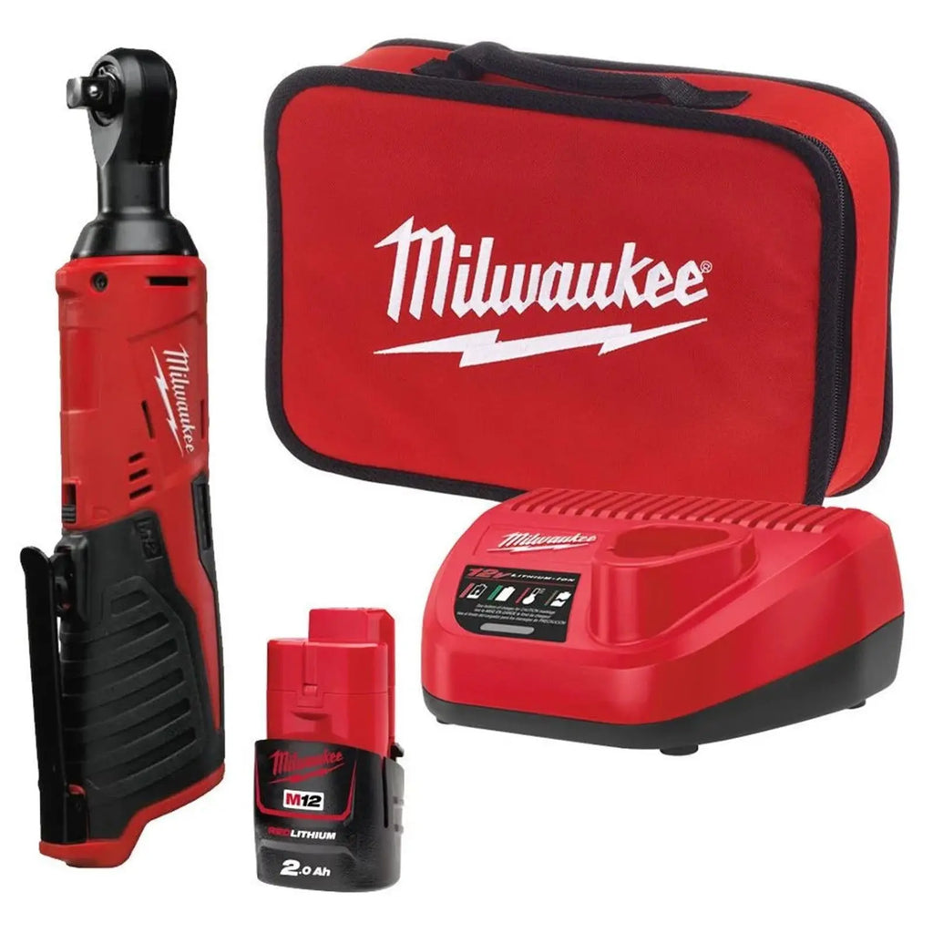 Milwaukee M12 12V 3/8" Drive Cordless Sub Compact Ratchet 2Ah Battery + Charger M12IR-201B 3/8