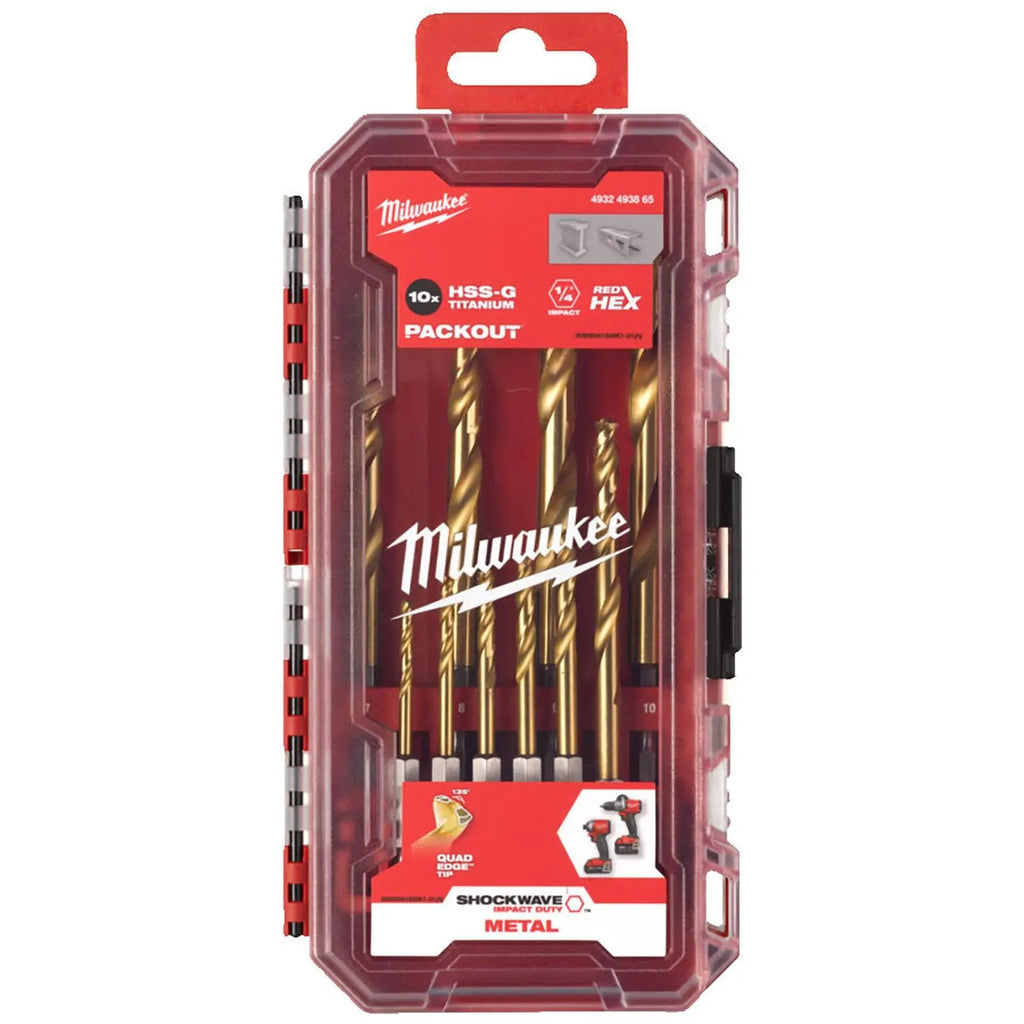 Milwaukee SHOCKWAVE Impact Duty HSS-G RED HEX Metal Drill Bit Set 10pc 3-10mm