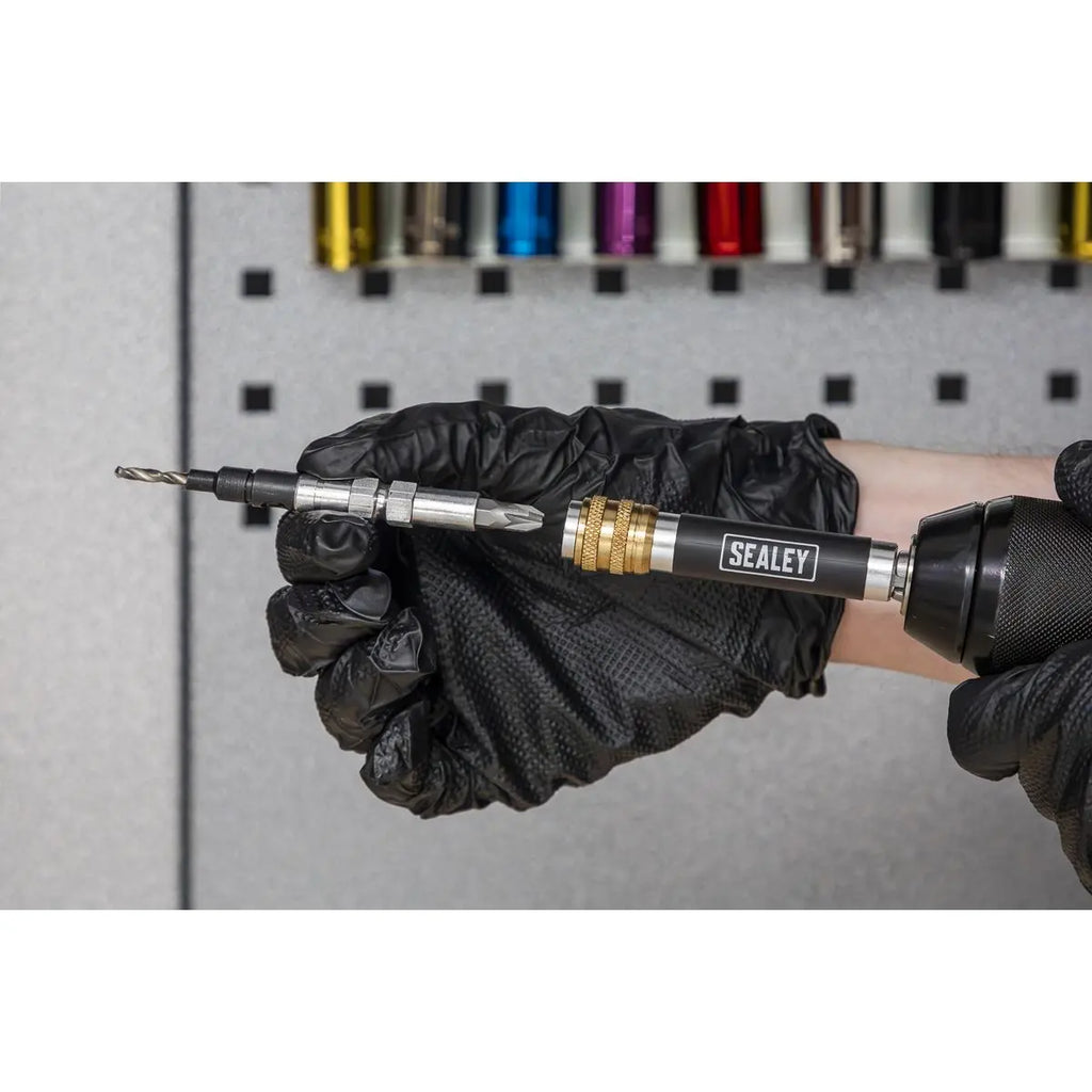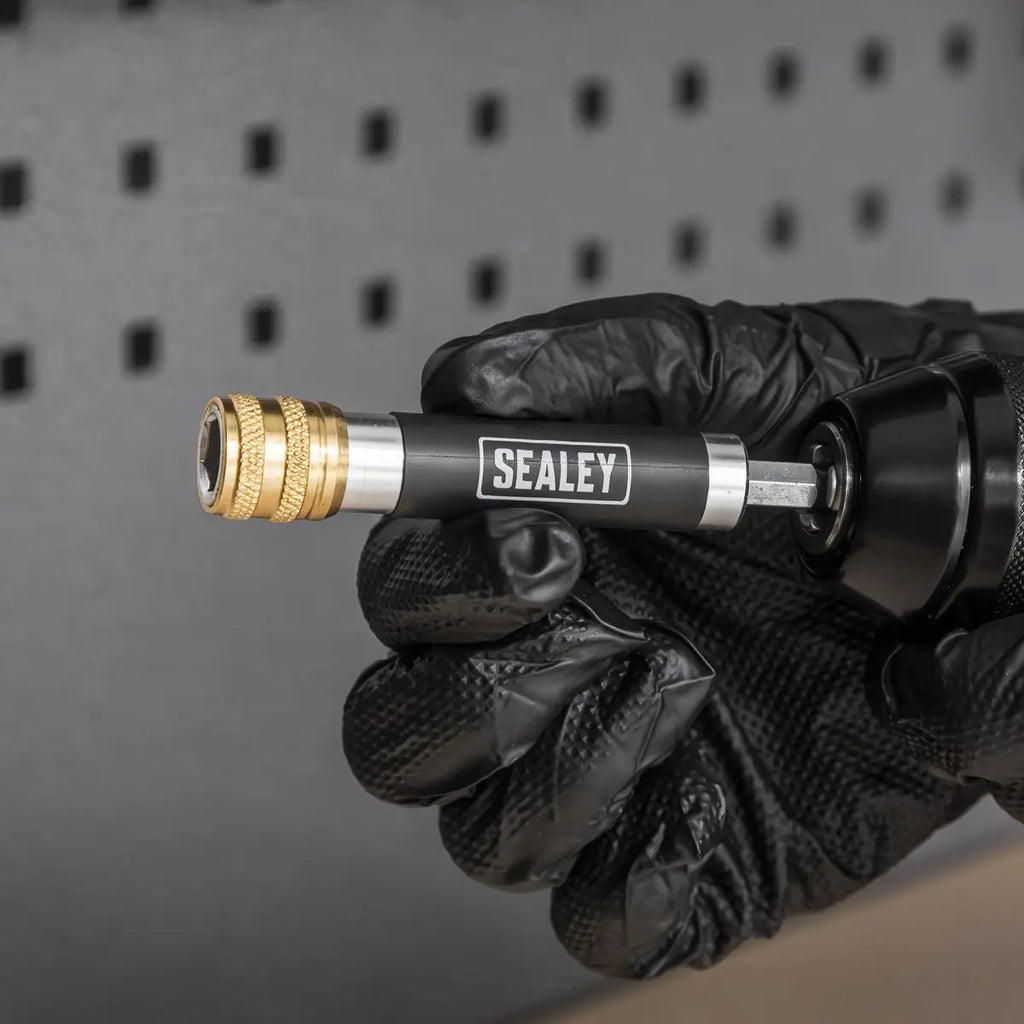 QUICK RELEASE CHUCK - Swift flip over allowed by quick release chuck on the extension bit holder.