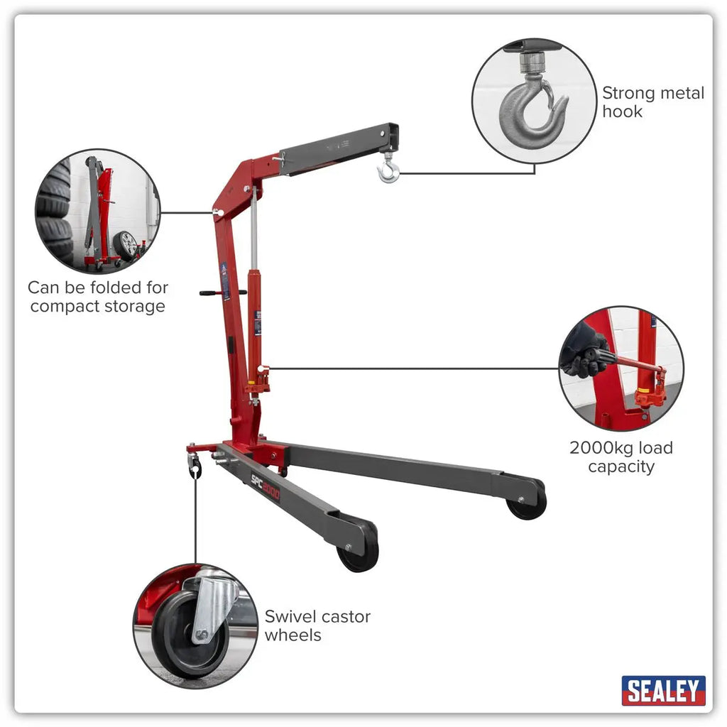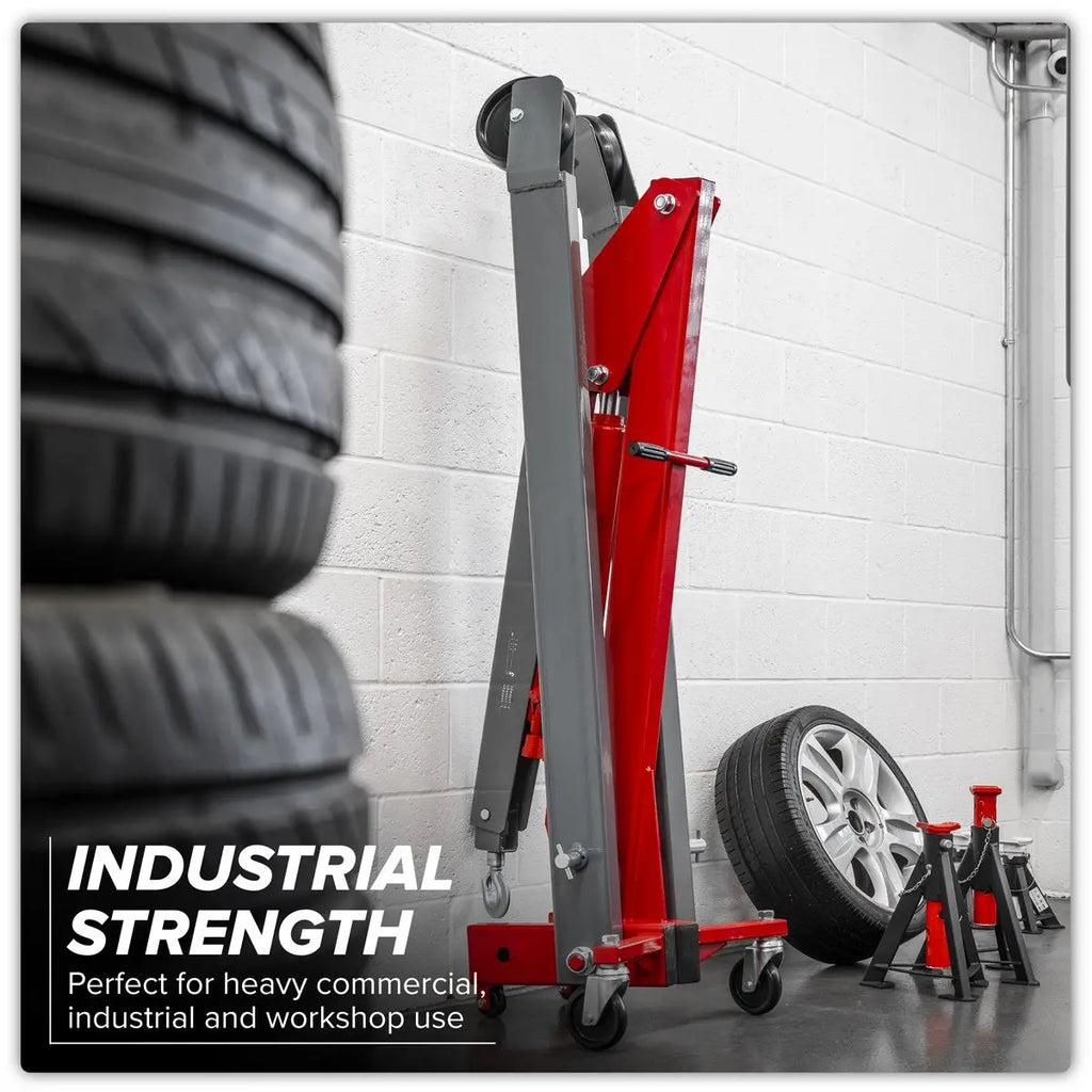 HEAVY-DUTY FRAME - 2 Tonne Folding crane with heavy-duty forged hook.