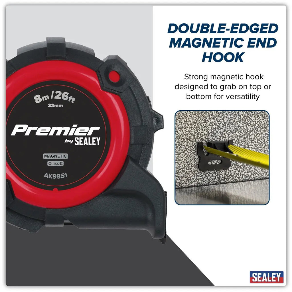 Sealey Premier Metric/Imperial Tape Measure Extra-Wide Blade 8m(26ft) x 32mm
