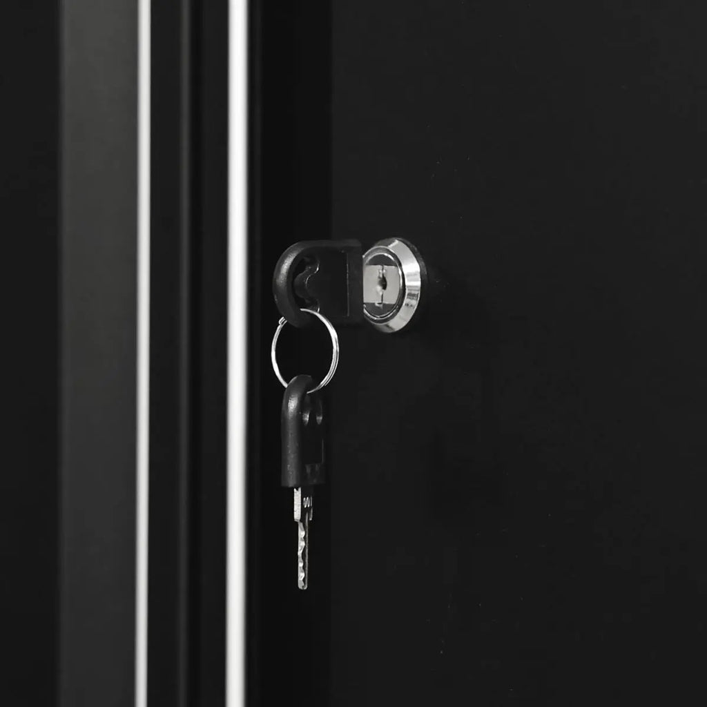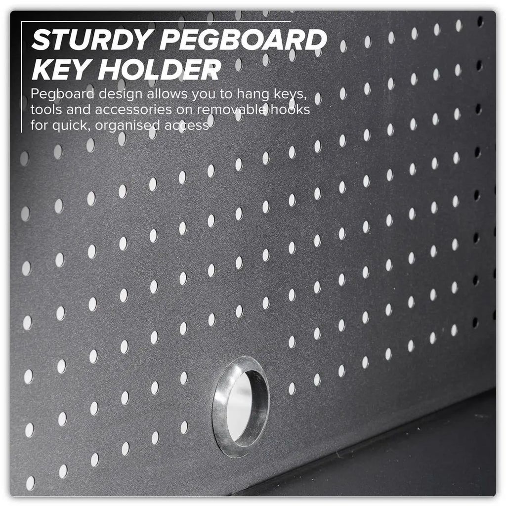 Pegboard design backing panels for additional storage.