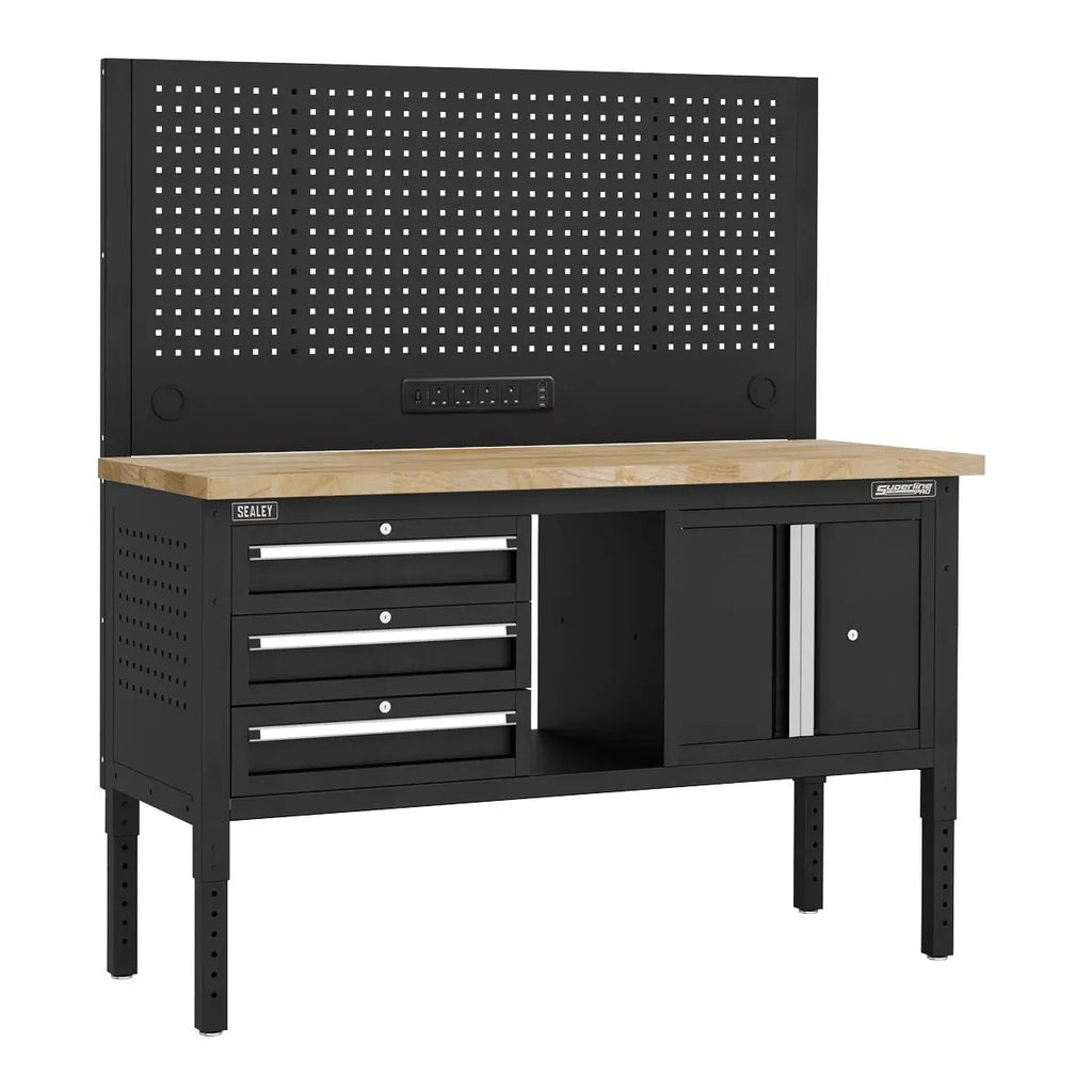 Sealey Superline Pro PRO® Modular Workbench with 3 Drawers & Cupboard Wooden Worktop 1525mm