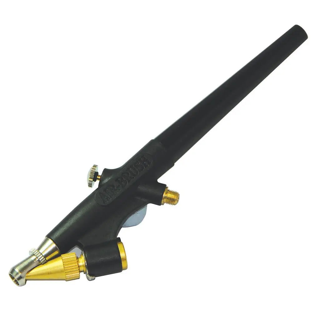 Simple, single-action trigger airbrush for general purpose hobby and model work. Variable pattern and paint flow is adjusted by the venturi nozzle. Can be powered by propellant canister or with a compressor if prolonged use is required.