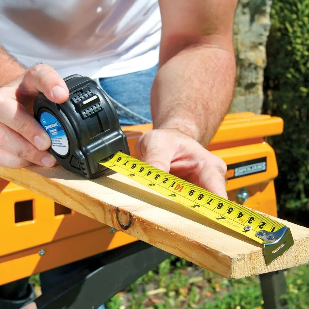 Shock-proof rubber housing, double-riveted blade tip and clear metric and imperial graduations. Belt clip. Class II accuracy.